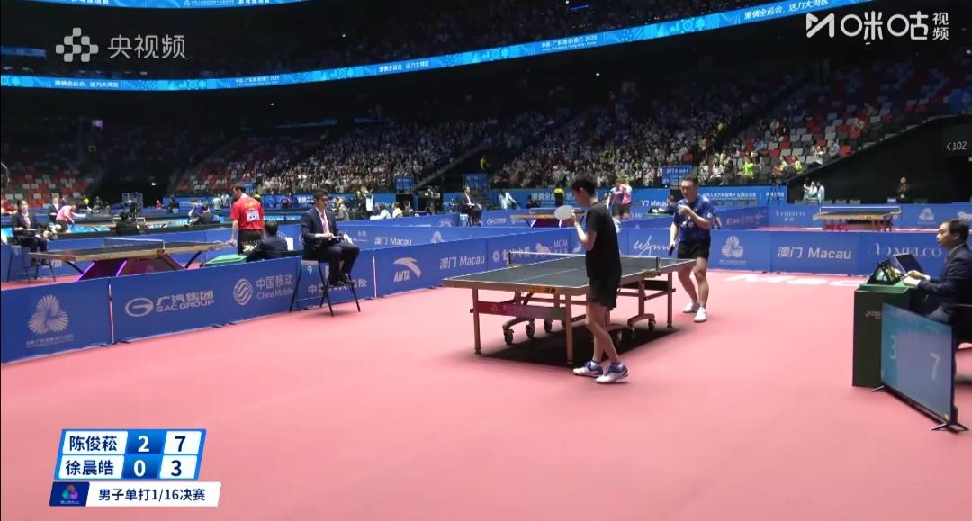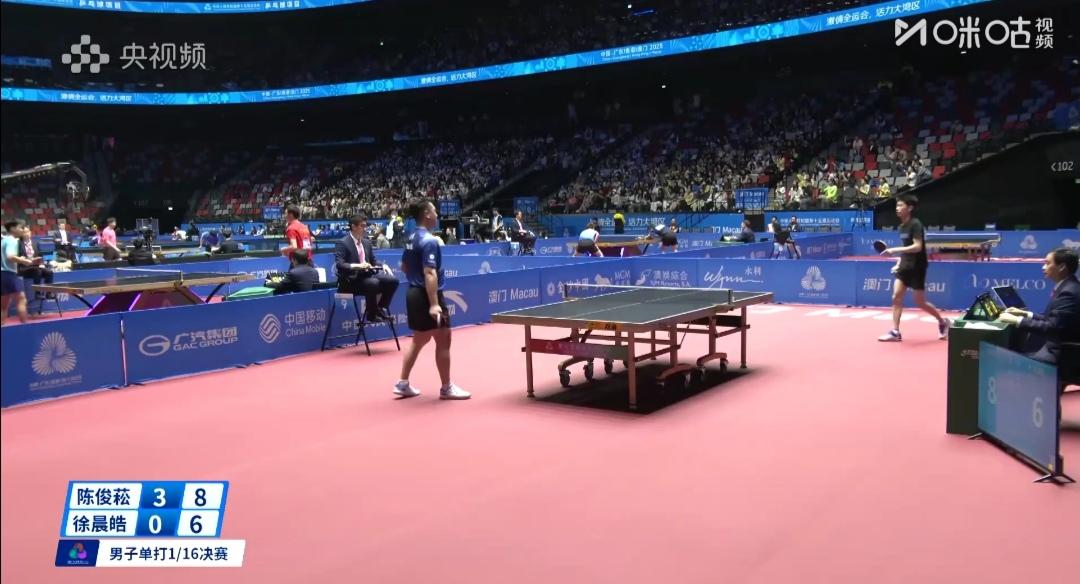 福建陈俊菘25分钟,4:0速胜北京徐晨皓! 11月10日 全运会成年组1/16决赛 福建陈俊菘4:0(11-5;11-3;11-3;11-7)速胜、横扫北京徐晨皓。 四局耗时仅25分钟! 大家记忆犹新,北京大满贯赛正是怪球手、小将陈俊菘狠狠地教训了狂妄的日本张本智和,3:2绝杀小张本! 热烈祝贺祝贺陈俊菘晋16强!