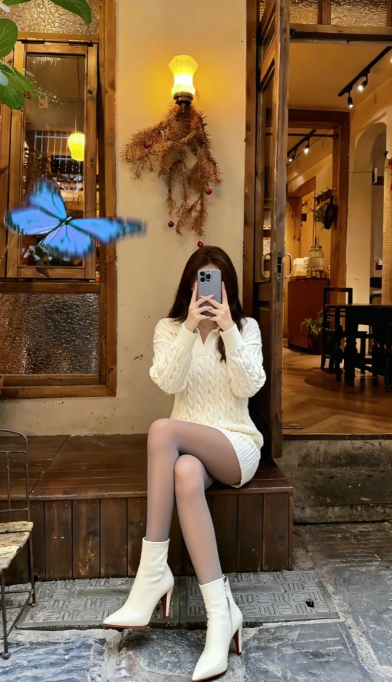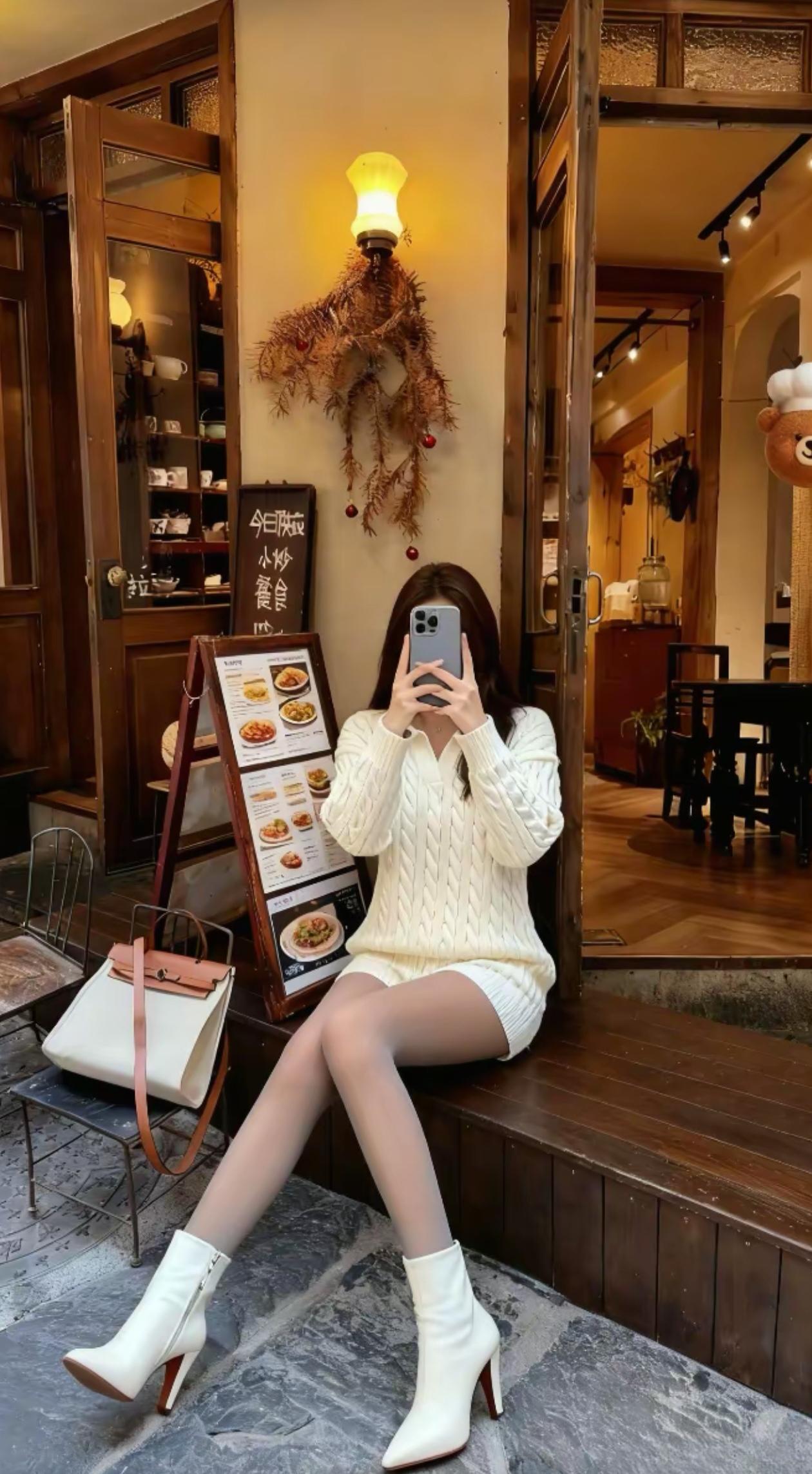 章若楠,毛衣真好看,但是配这裙子有点不太完美了。