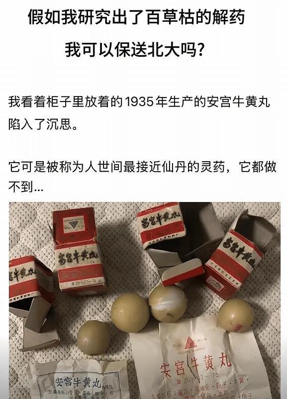 “研发百草枯解药想保送北大?格局小了——这成果往诺奖评审桌上一放,评委都得连夜改规则。你再看那1935年的安宫牛黄丸,顶多是‘急救界老古董’,遇上百草枯毒素都得摆手:‘我是文物,不是杀毒软件啊!’北大保研办得追着你问:‘实验室要多大?终身教授职称直接给行不?’”
