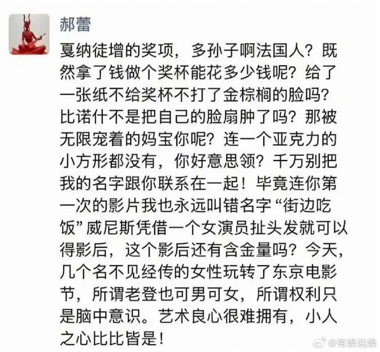 辛芷蕾 郝蕾郝蕾为啥不撕张家卫,被人内涵了肯定要发声撕回去啊,凭什么要忍着,她只是郝蕾她不是张曼玉,希望她能明白…