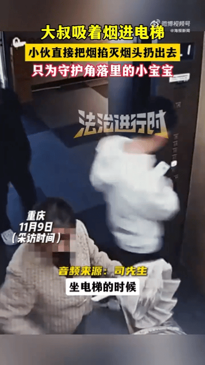 电梯里刚要关门,叼着烟的大爷抬脚就进来了,旁边小伙二话不说,直接上手把烟头掐灭扔出去了!因为电梯里还站着位推婴儿车的阿姨,小宝宝就安安静静待在车里。事后小伙说,自己家里也有娃,一看见密闭电梯里飘烟味,瞬间就忍不住了,不过他也承认乱扔烟头不对,这事很快在网上吵翻了天。 电梯就那么大点地方,通风又差,二手烟里的尼古丁浓度能飙到正常环境的50倍,成年人闻着都呛得慌,更别说呼吸道还没长好的小宝宝,很容易引发哮喘、肺炎这些毛病。大爷可能就是习惯了,没多想电梯是公共场所,可再多年的习惯,也不能往别人健康上霍霍啊!而且这事儿有意思的是,大爷被掐了烟也没发火,小伙扔完还脸红着赶紧跑了,俩人都没把冲突闹大,说明心里都门儿清:个人自由得有边界,不能踩着别人的权益来。 公共场所禁烟令都出台十几年了,电梯里大多也贴着禁烟标志,可就是有人不当回事,觉得“抽根烟而已”,殊不知这不仅是不文明,还涉嫌违法。 大家要是都能自觉遵守公共规则,烟民多走两步到室外抽烟,其他人也能互相体谅。说实话不抽烟的人真的闻不了一点烟味,不管是电梯这种密闭场所还是公共场合,抽烟就是不道德,不把规定放在眼里,为这位小伙子的行为点赞,做了我一直想做但不敢做的事[赞] 来源:新浪新闻