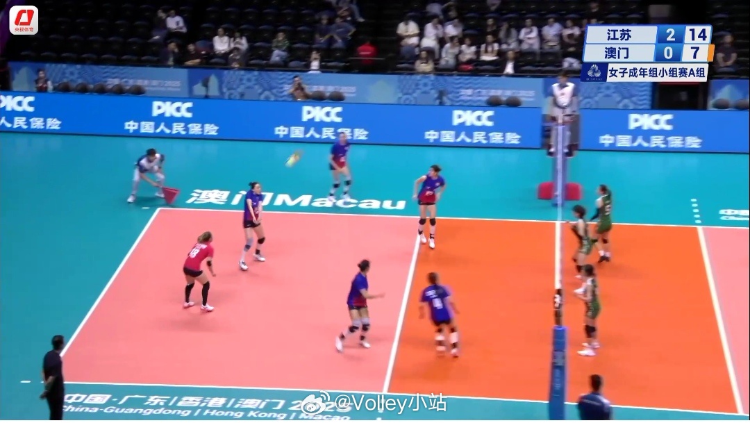 第十五届全运会 女排小组赛A组,江苏女排3比0澳门女排(25-13 25-5 25-13),江苏女排取得小组赛三连胜