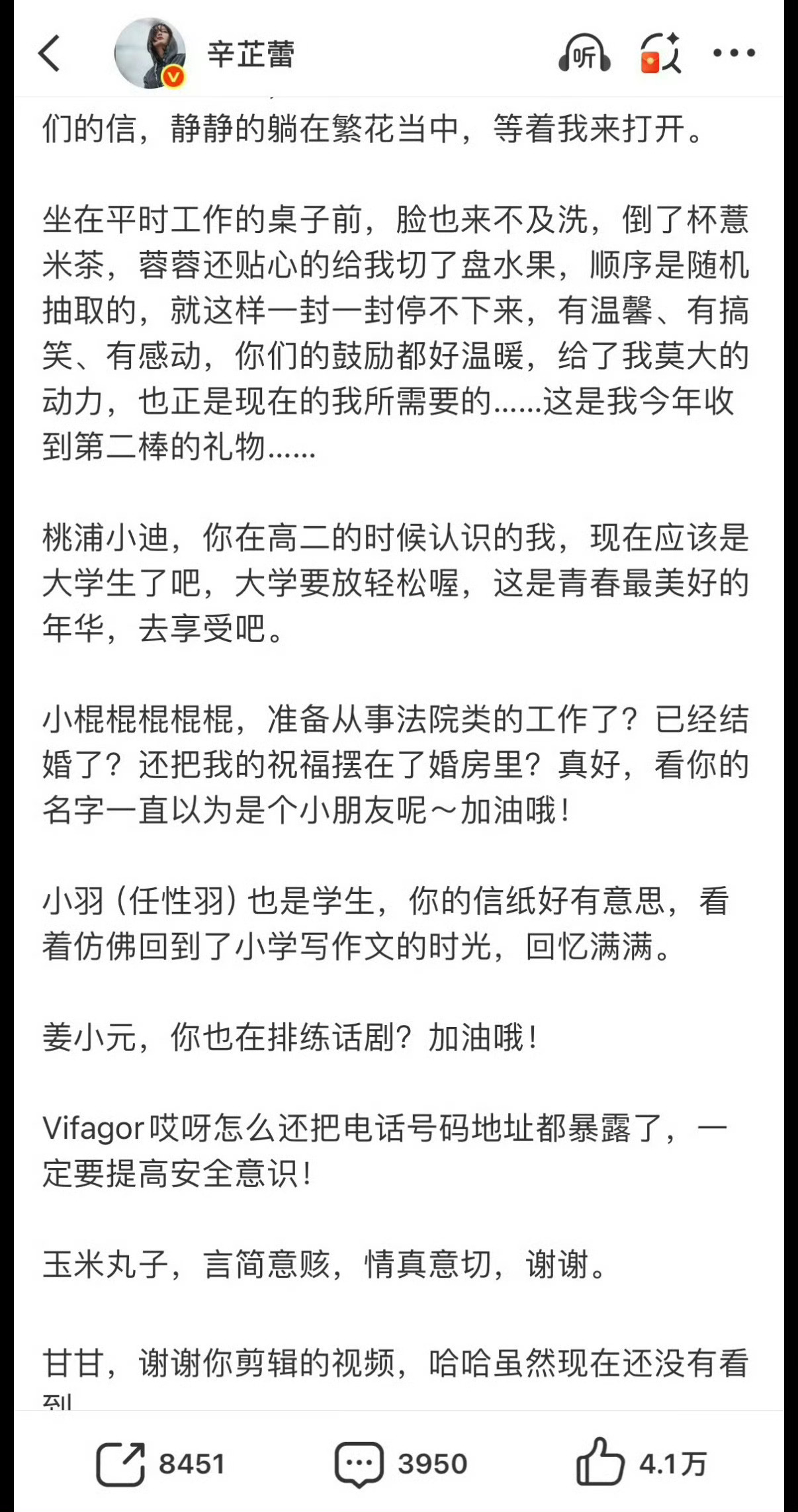 辛芷蕾现在车马很快不需要写信 辛芷蕾:看不过来了看不过来了,本来眼神就不好[柯基]