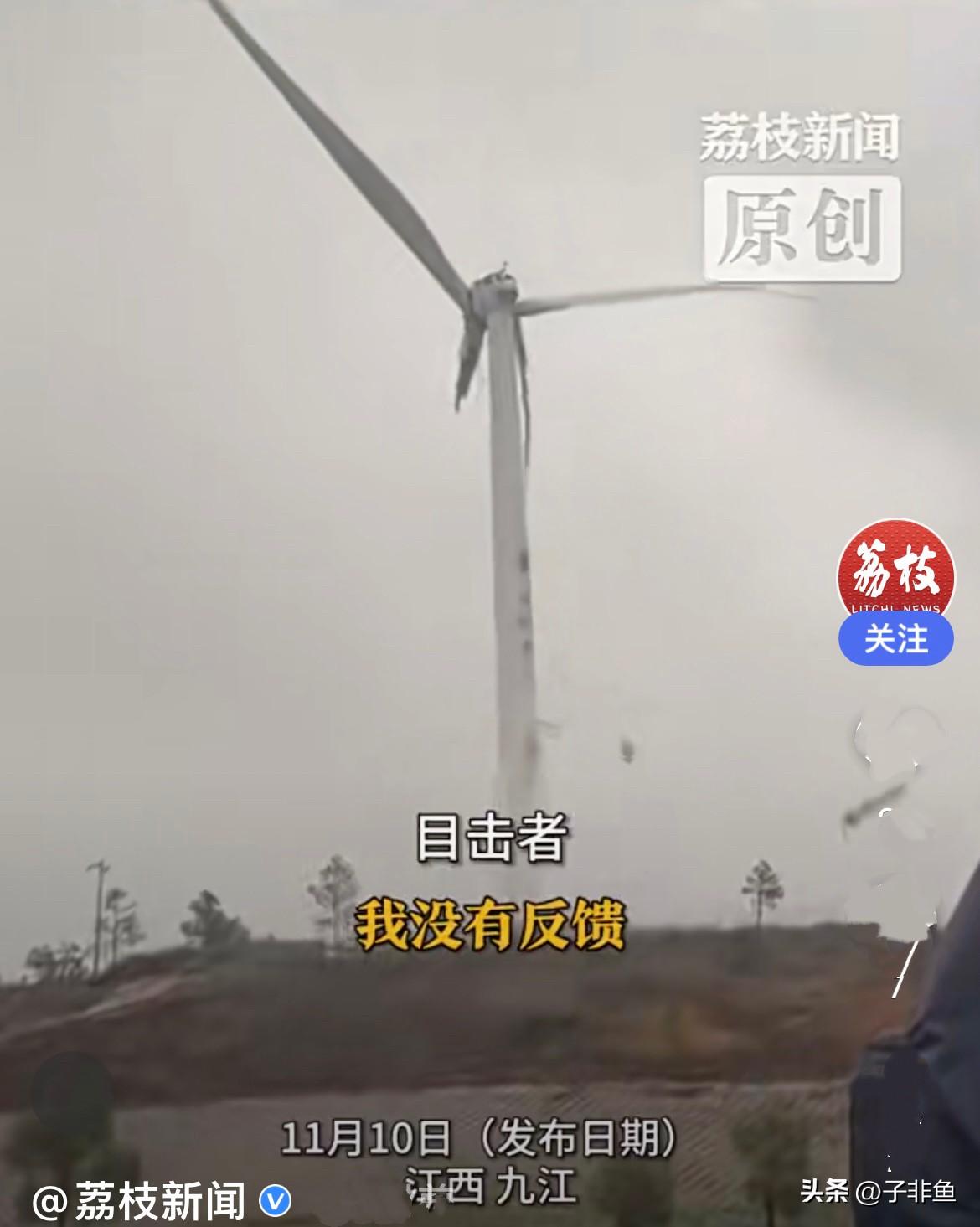 11月9日 江西九江市一风力发电机正在运转,突然一叶片主体断裂和部分部件一同坠落,太吓人了…… 由于失去平衡,风机主体摇摇晃晃,事故未造成人员伤亡…… 已在涉事电机周围进行围挡处理事故,事故具体原因正在调查……