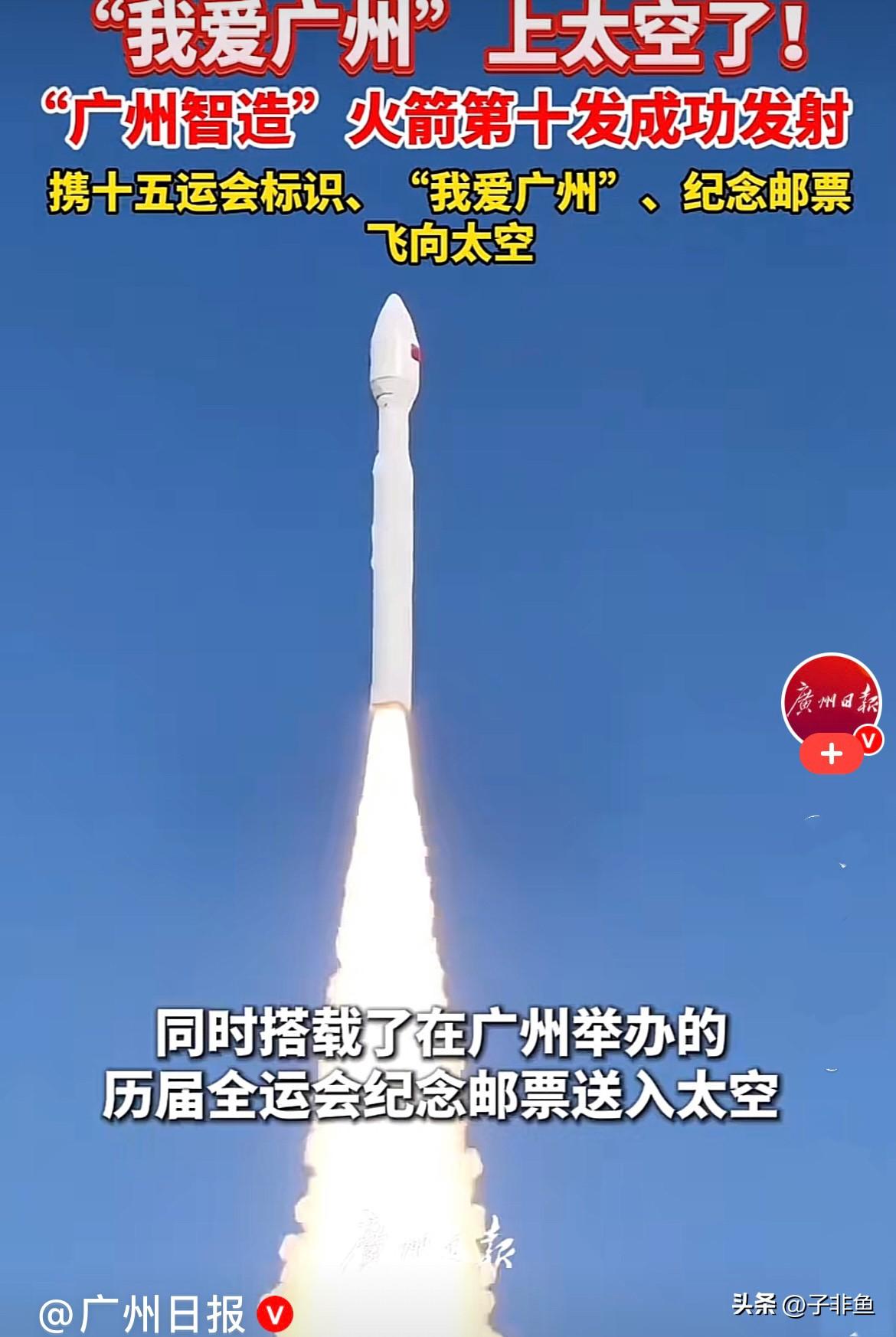 11月9日11时32分,中科宇航力一号遥九运载火箭在东风商业航天创新试验区发射“一箭双星”成功发射…… 此次箭体特别涂装了“中华人民共和国第十五届全国运动会”字样及赛事标识以及“我爱广州”和“广州广阔 与您合伙”的城市宜言,同时搭载了在广州举办的历届全运会纪念邮票送入大空…… 截至目前,力箭一号运载火箭 成功将75颗卫星送入太空…… 太厉害了[赞][赞][赞]
