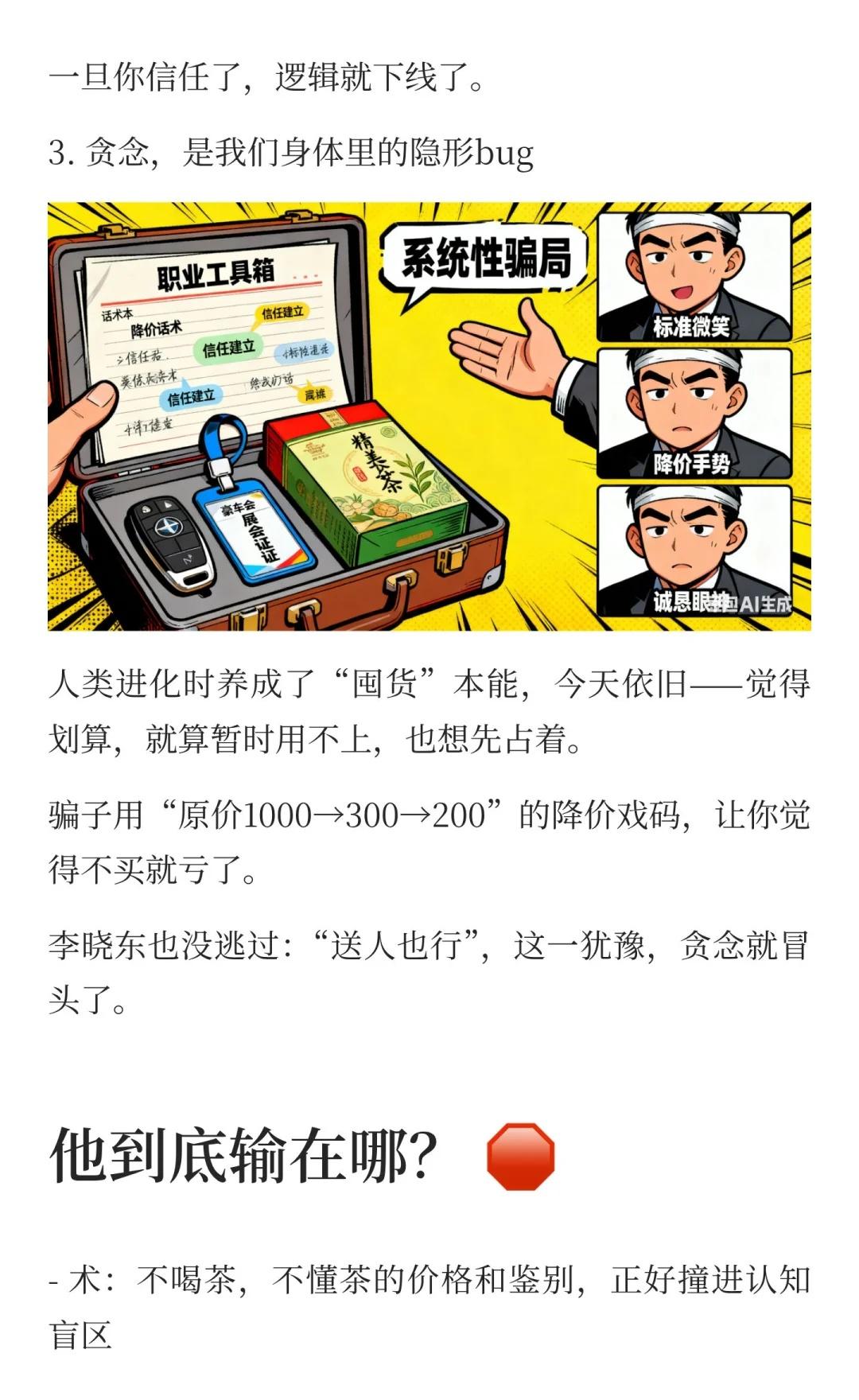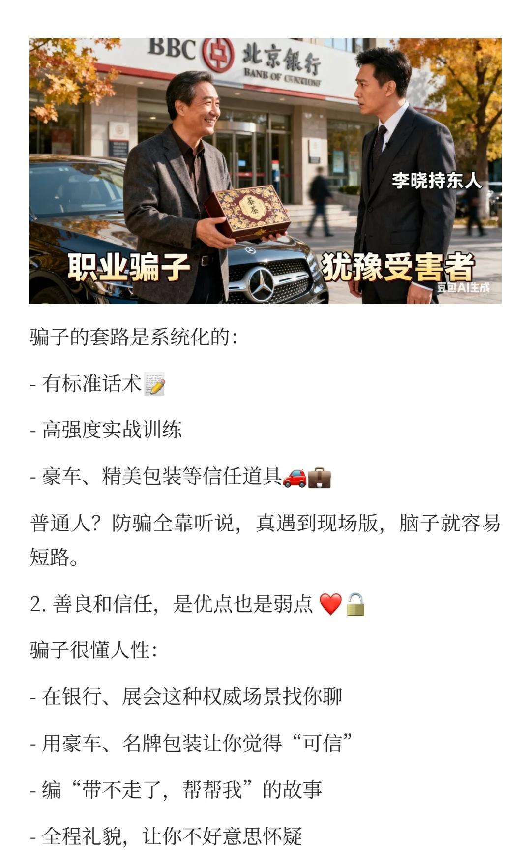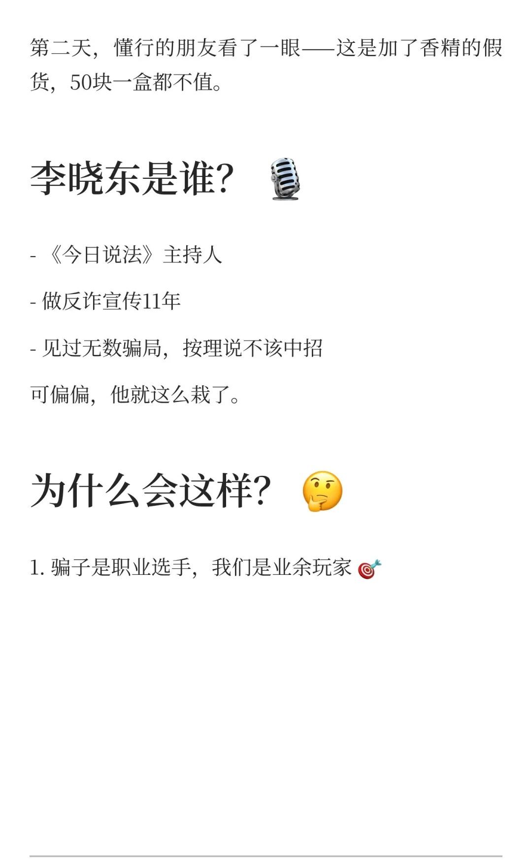 反诈专家也翻车?《今日说法》主持人李晓东 李晓东因贪便宜买了假茶,被骗1000元。骗子利用职业技巧和人性弱点,成功让他放松警惕。防骗关键在于保持敬畏、设边界、不贪便宜,避免落入骗局。 反诈 防骗指南 人性弱点 社会观察 李晓东 今日说法 生活经验分享 街头骗局 贪念