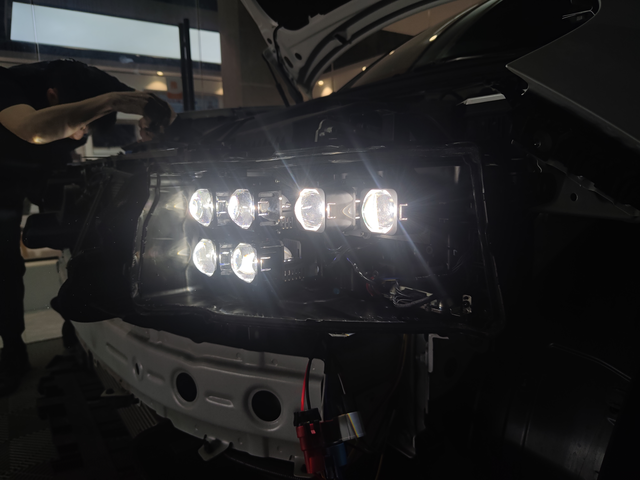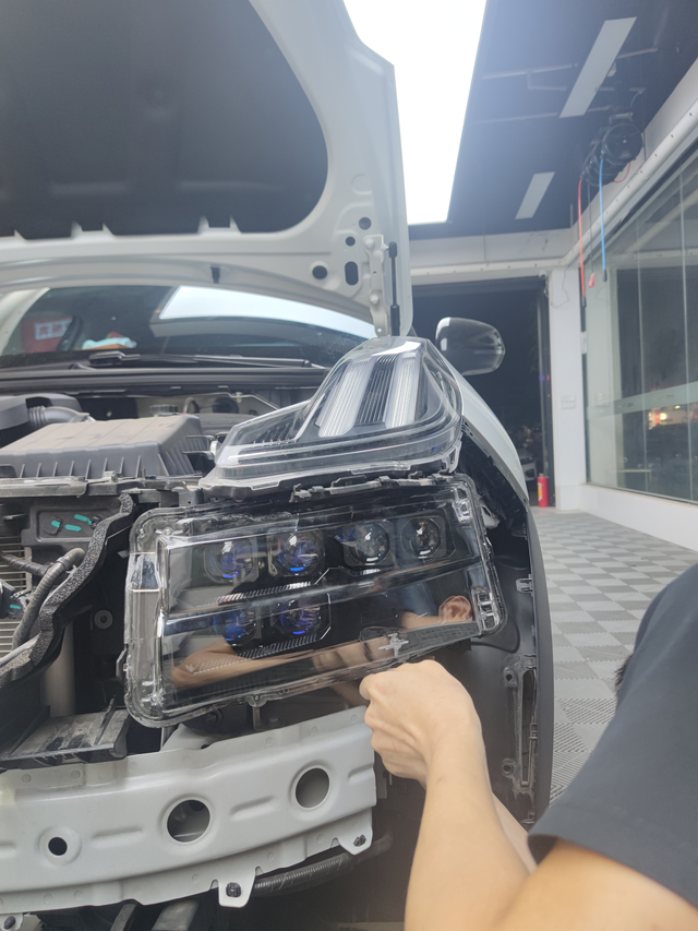 受不了有时车灯不够亮,终于下决心升级车灯 开夜路看不太清楚,把大灯改了,改成8近12远矩阵透镜!!大灯质保没了!!但是,晚上开着很放心,不怕前面看不清路面,有异物刹不急了!!