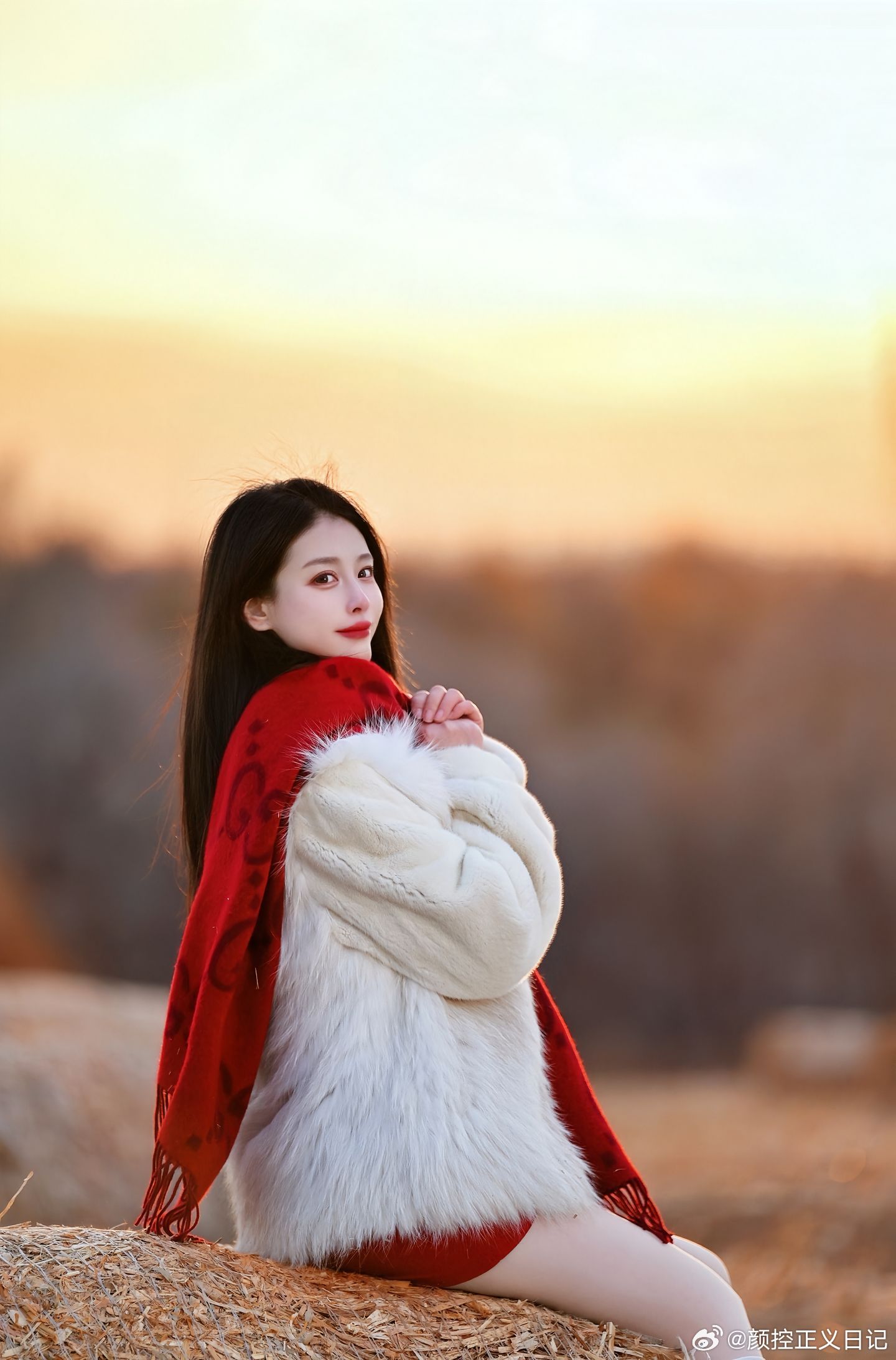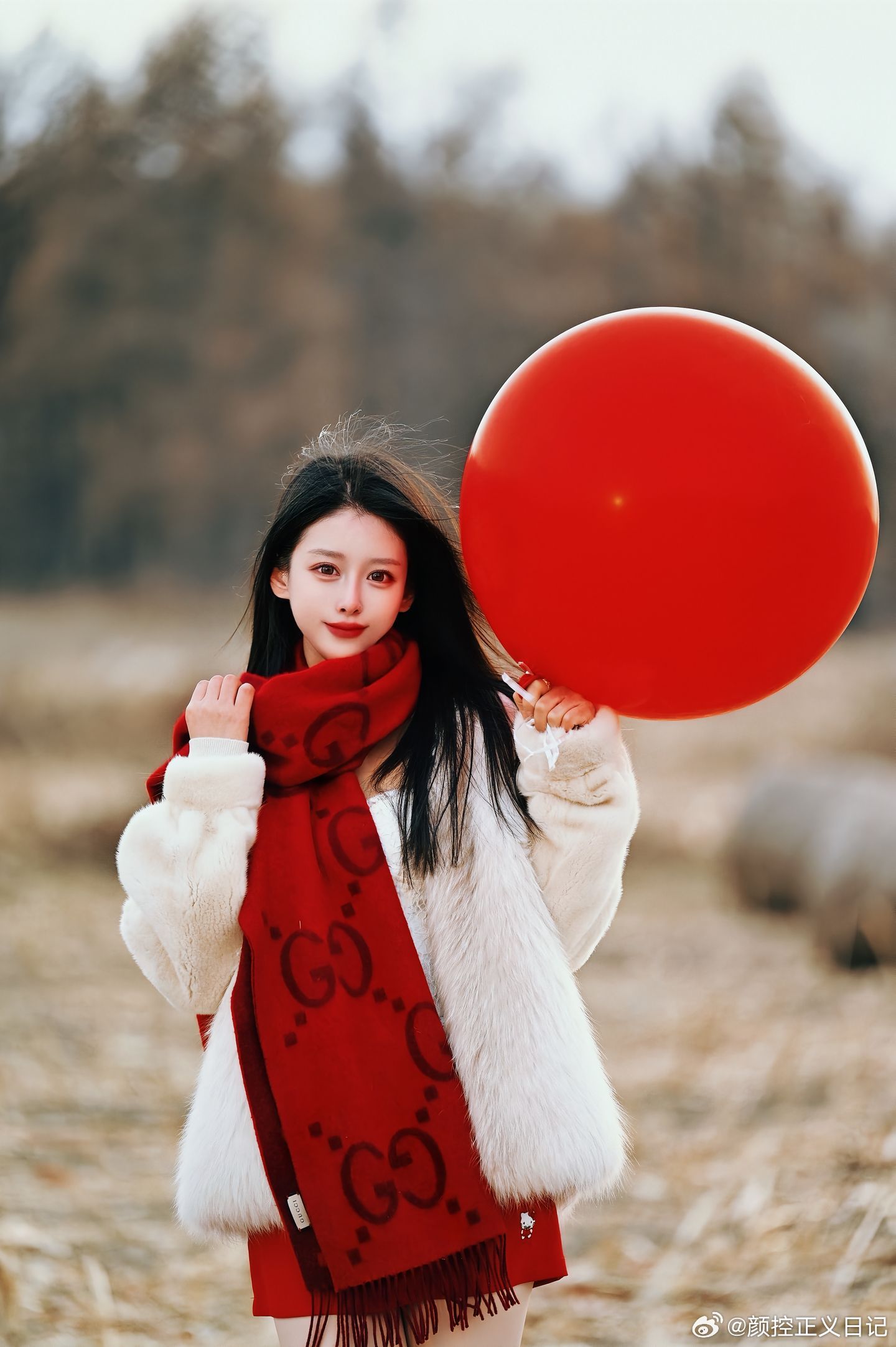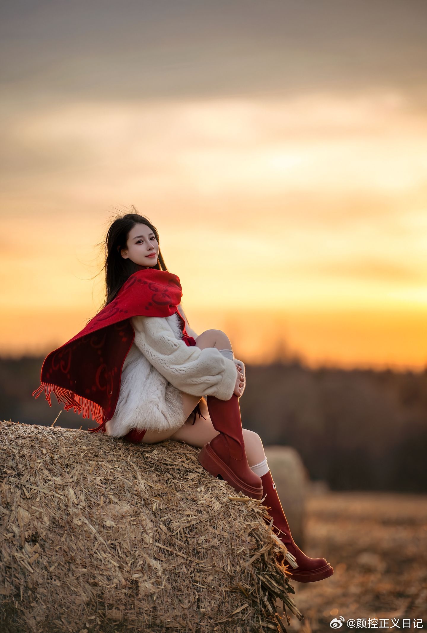 穿搭[超话] 红色围巾红靴美女精彩人像[超话]