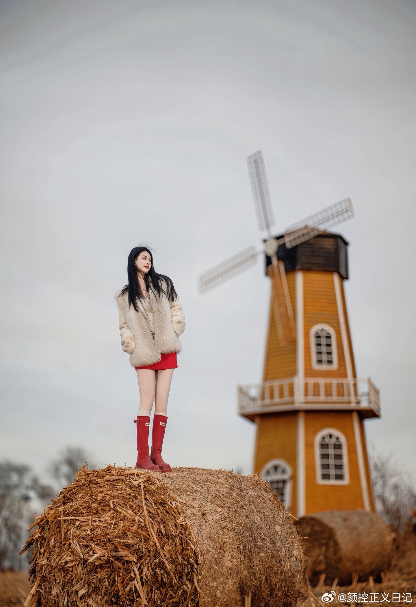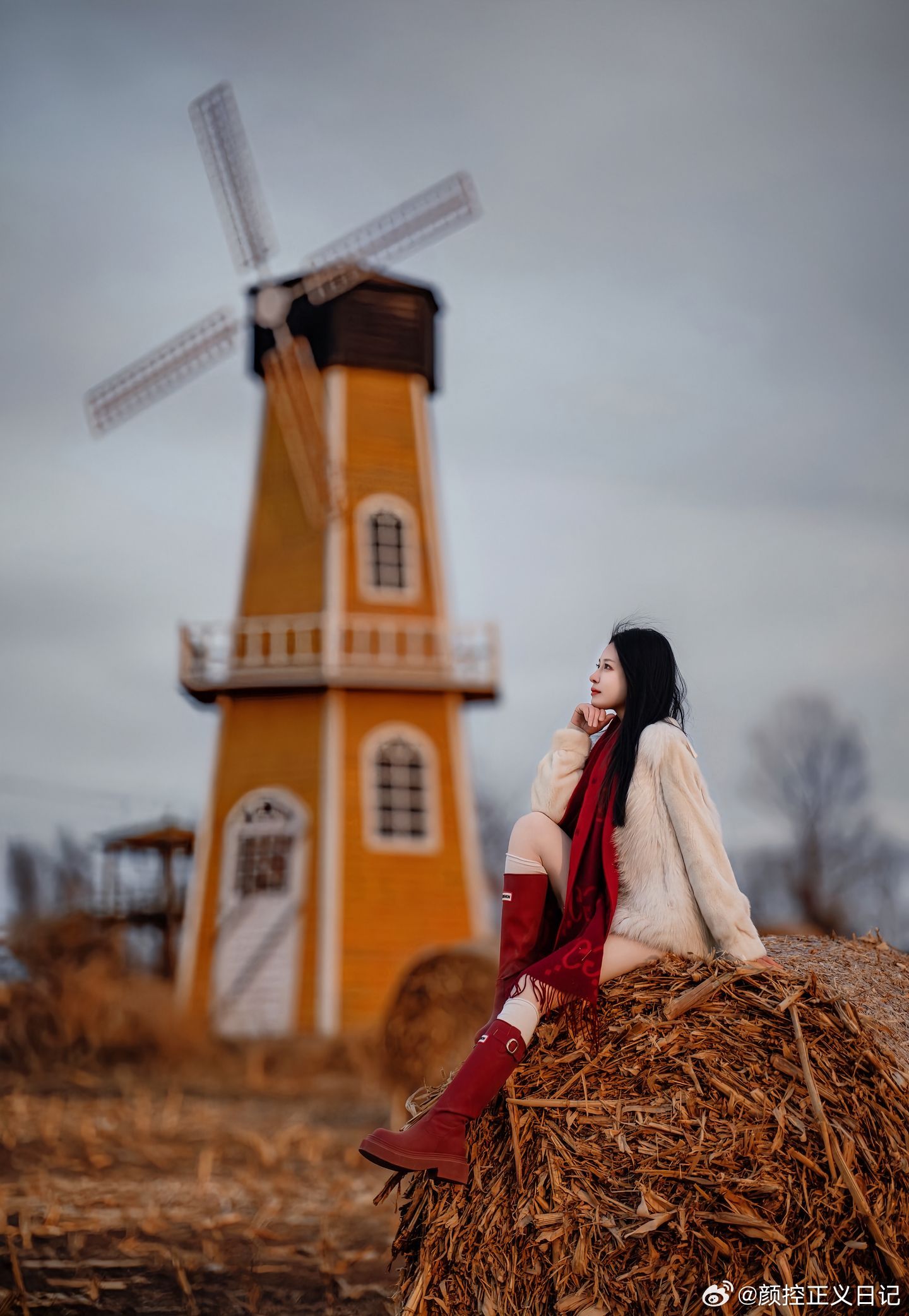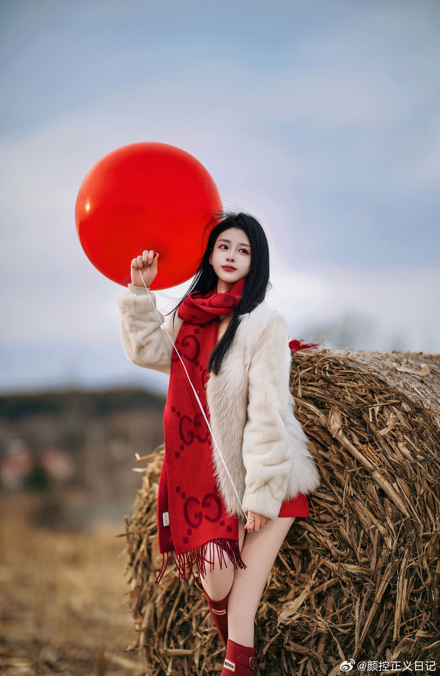穿搭[超话] 红色围巾红靴美女精彩人像[超话]