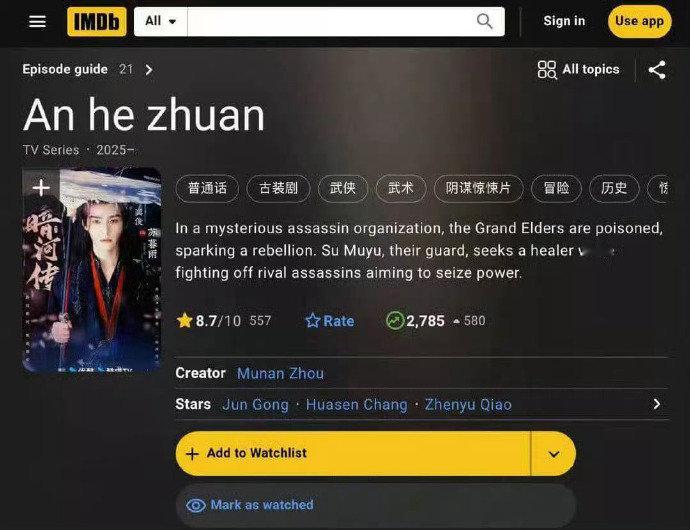 龚俊暗河传外网评分涨到8.7,暗河传海外热度妥妥拿捏住了呀~