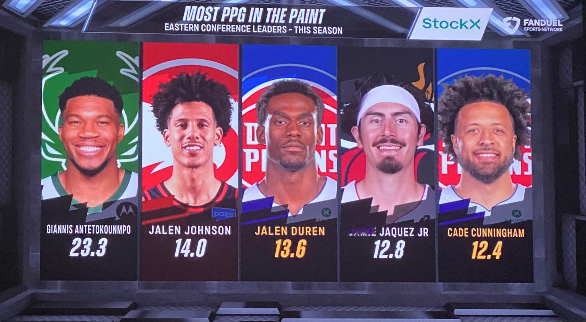 本赛季禁区得分榜,前五中活塞占了俩