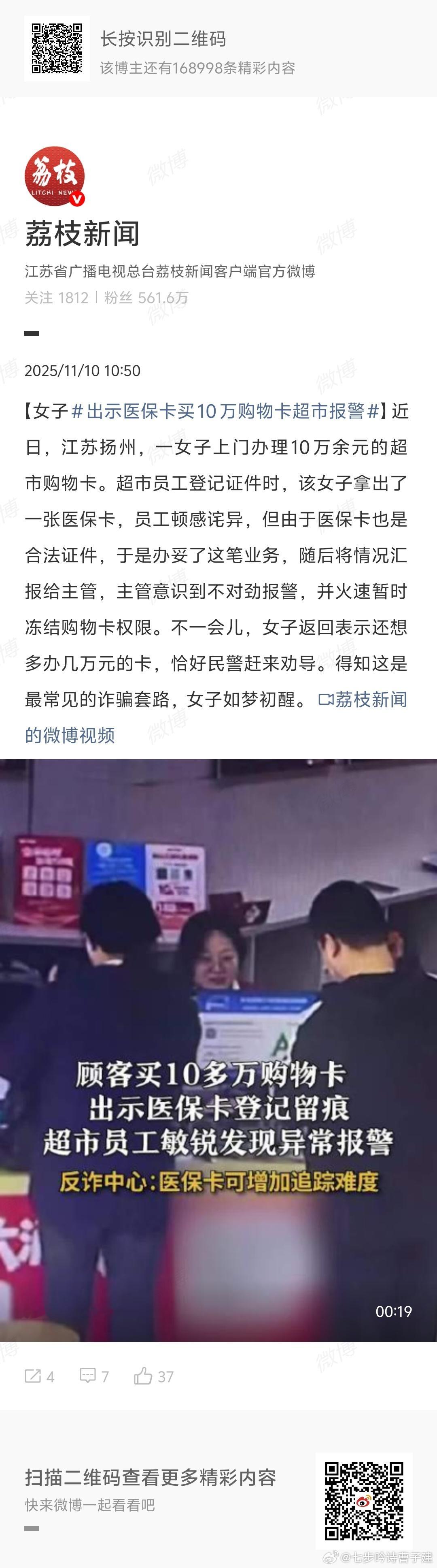 出示医保卡买10万购物卡超市报警这当然引起怀疑了