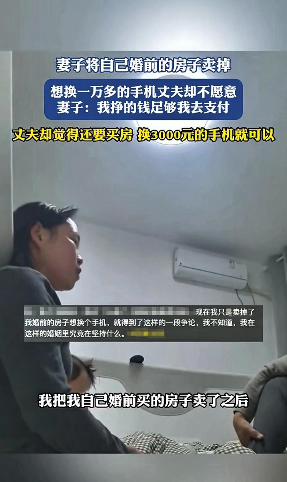 妻子将自己婚前的房子卖掉,想换一部一万多的手机丈夫却不愿意。 妻子:我挣得钱足够我去支付。丈夫却觉得还要买房,买一部3000元的手机就可以了。 这事儿真让人琢磨。从妻子角度看,婚前房子是她的个人财产,她有权支配,或许她觉得换个好手机能提升生活品质。 再说妻子卖掉自己的婚房,拿出30万跟老公一起买房,自己也不差这1万块钱买手机。 可从丈夫的立场,卖房子换手机这操作太疯狂,毕竟房子价值远高于手机,可能他更希望这笔钱用在刀刃上,所以俩人产生了分歧。 其实还是换手机和买房子这两件事赶到一起了,丈夫觉得买房是大事先把钱凑到一起解决大事。 手机先买个3000元的先用着,可是妻子也有赚钱能力,有的时候可能是工作需要所以要买个10000多元的手机。 俩人可以商量着来!我觉得妻子已经拿出诚意了,只要不影响房款的条件下,买1万多的手机丈夫应该支持的。 记得2012年那年我23岁,男友26岁。我和男友也是现在的(老公)凑钱买房,当时首付30%房子全款579000,真的连借带凑才凑够19万。 当时我出了7万左右,老公出了8万,我又去跟我哥借了4万,当然这个4万后来是我老公还的。 没有父母帮衬的家庭就是这样过来的 想想买房子这件事,对于20岁出头年轻人来说真是挺不容易的。 尤其是现在的房价即使下调也比十几年前要贵。在郑州一套80-90的小三房普通地段新房首付也要差不多30个左右。二手房可能还便宜点? 妻子卖了婚前的房子拿出30万和丈夫一起买房,想拿钱买一个1万块钱的手机也不是什么过分的事。 自己也有挣钱的能力,为什么不可以呐?反观丈夫想要的太多,不能让妻子一味地牺牲呀!现在有多少女人愿意跟男人一起买房创业的,很多都是想要现成的。 丈夫就别在说教了,开心的支持她就行了。这样新房子也买了,妻子买了手机也高兴了,俩人开心的过日子多好。