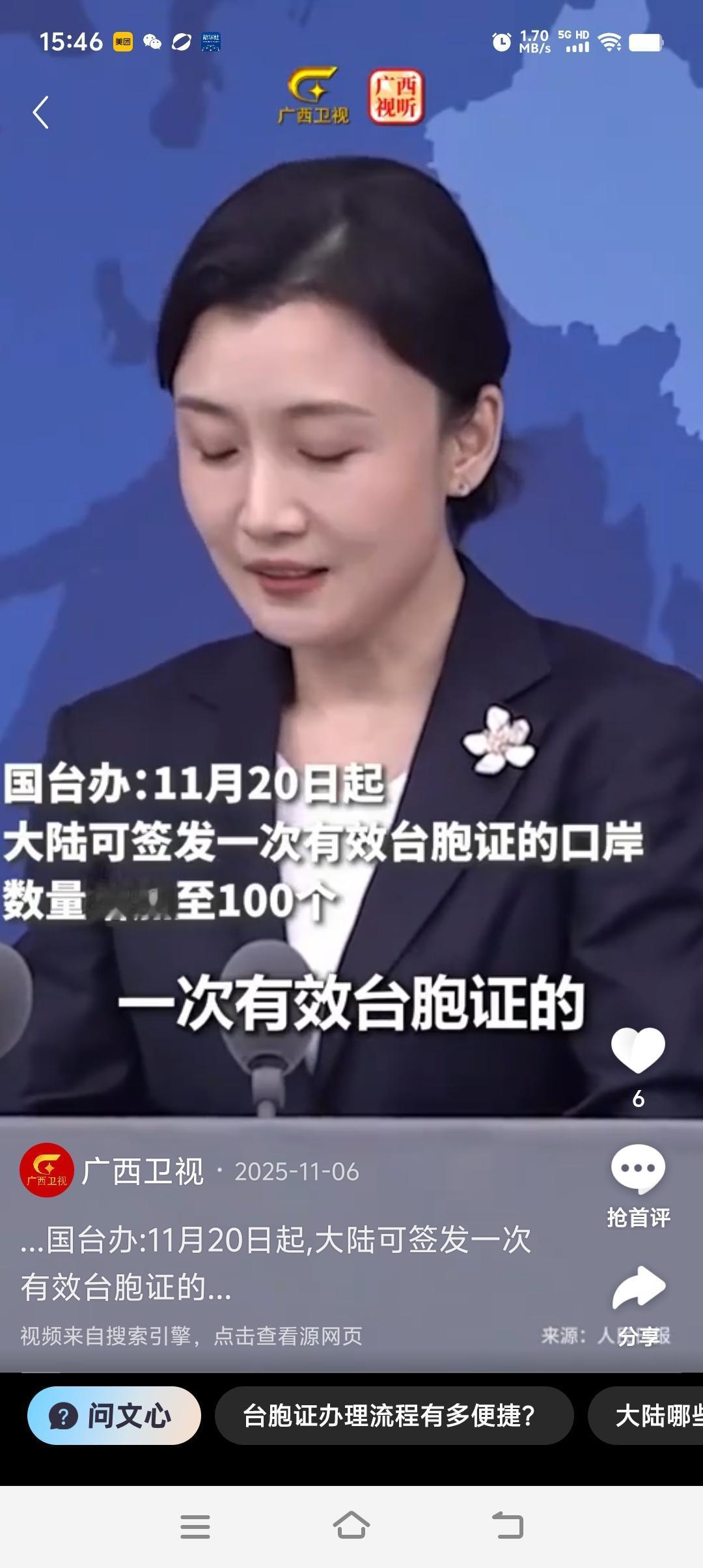 《大陆台胞旅游新规:促交流、融经济、聚民心》 30分钟落地签、上千景区免门票,大陆正以务实举措为台胞敞开“说走就走”的旅行之门。“台湾同胞是我们的骨肉天亲。”国务院台办新闻发言人张晗在2025年11月5日的例行发布会上的表述,道出了这一系列政策的核心初衷。自2025年11月20日起,大陆将可签发一次有效台胞证的口岸数量由58个扩至100个,未持有效证件的台胞在入境口岸30分钟内即可申领一次入出境有效台胞证,这场覆盖通关、消费、产业的政策升级,正让两岸民间交流迈上新台阶。 一、通关便利化:从“便捷”到“无忧” 通关与证件办理的便利化升级,是此次政策最引人注目的亮点。台胞只需持台湾地区出入境证件和身份证,在入境口岸提交申请,30分钟内就能拿到一次入出境有效台胞证,凭此可在大陆停留游玩3个月,真正实现“说走就走”。若3个月期限无法满足出行需求,台胞还能在全国任意县级以上出入境管理部门申办5年有效期的卡式台胞证,最短4天即可取证,满足长期往返需求。 针对首次来大陆的“首来族”,政策更是送上“见面礼”——办理一次有效台胞证完全免费,从源头降低首次赴陆的经济门槛。值得关注的是,张晗特别强调,台胞来大陆办证、入出境时,证件上不会做任何特殊标记,充分保障台胞出行隐私与便利,让每一位赴陆台胞都能安心出行。 二、旅游优惠:从“首来族”到全体台胞 大陆为台胞提供的旅游优惠,呈现出“中央统筹+地方加码”的全方位覆盖态势。对台湾“首来族”而言,不仅能享受首次办证免费,还可畅玩全国上千个免门票景区,涵盖自然景观、历史文化、红色旅游等多种类型,低成本感受大陆的山河之美与人文底蕴。 地方层面的响应同样积极。平潭综合实验区率先推出“全民普惠”政策,所有国有景区对台胞免首道门票,并鼓励民营景区参照执行,打破了“仅针对首来族”的限制;云南省则自2025年3月起,对首次办理台胞证(签发次数为01)的台胞,给予自签发之日起一年内320个景区首道门票免费的福利,石林、哈尼梯田、丽江玉龙雪山等知名景点均在列,让台胞的云南之行更具性价比。中央与地方的政策联动,形成了覆盖不同群体、不同区域的旅游优惠矩阵。 三、产业支持:两岸旅游合作的深度拓展 此次政策并非局限于游客端优惠,更延伸至产业层面,为两岸旅游融合发展搭建平台。平潭综合实验区出台的《关于促进两岸团队游的七条措施》,构建起全方位的产业支持体系:对组织台湾游客来岚旅游且住宿2晚以上的旅行社,按年接待量给予每人次250-300元奖励;针对台湾青少年研学旅游,在基础奖励上额外增加每人次200元补贴,鼓励两岸研学交流常态化。 在人才流动方面,政策支持台湾导游经采信培训考核后在平潭执业,当年度带团满30天、45天、60天的,分别给予2万-5万元一次性奖励,让台湾旅游从业者在大陆拥有广阔发展空间。同时,允许台湾地区综合旅行业在平潭设立旅行社,凭金融机构保函即可免交质量保证金,降低市场准入门槛,促进两岸旅游人才、资金、资源的双向流动与深度合作。 四、政策意义:从民间交流到民族认同 这一系列优惠政策的意义,早已超越旅游本身,成为推动两岸关系发展的重要纽带。在交流层面,政策彻底打破了办证繁琐、口岸覆盖不足等传统壁垒,“台胞可从世界各地直抵大陆,无需提前办证”的便利化举措,让更多台湾中南部民众、青少年等群体得以跨越隔阂,走进大陆。面对面的相处中,台胞既能领略长城、故宫的文化厚重,也能感受城市新区、乡村振兴的发展活力,有效消除台湾当局刻意制造的认知偏差,让“两岸一家亲”从口号转化为真切体验。 在经济层面,政策为两岸旅游产业注入新动能。台湾优质旅游发展协会理事长李奇嶽透露,即便台湾当局仍实施“禁团令”,大陆仍是台湾居民出境旅游的第二大目的地,此次政策红利将进一步激活这一市场,带动大陆旅游、餐饮、住宿、交通等相关产业发展,同时为台湾旅游从业者开辟新的发展空间,实现两岸产业优势互补、互利共赢。 更深远的意义在于民族认同的凝聚。对台湾青少年而言,研学旅游优惠政策为他们提供了了解祖国大陆的宝贵机会,通过实地探访历史遗迹、科技企业、乡村振兴示范点,有助于增强民族自豪感与文化认同感,培养两岸关系和平发展的新生代力量。而大陆在台湾当局阻挠两岸交流的背景下,主动推出惠民政策,既彰显了“以人民为中心”的发展理念,也向外界传递出推动两岸交流的最大诚意,进一步壮大“要和平、要发展、要交流、要合作”的民意潮流。 横琴口岸11月5日起实施240小时过境免签,11月20日纳入台胞证签发口岸,成为政策落地生动注脚。随着便利普惠措施全面实施,更多台胞将感受大陆发展与同胞情谊,筑牢两岸民间交流桥梁,夯实两岸关系和平发展民意基础,让同胞越走越亲,共谱民族复兴新篇。