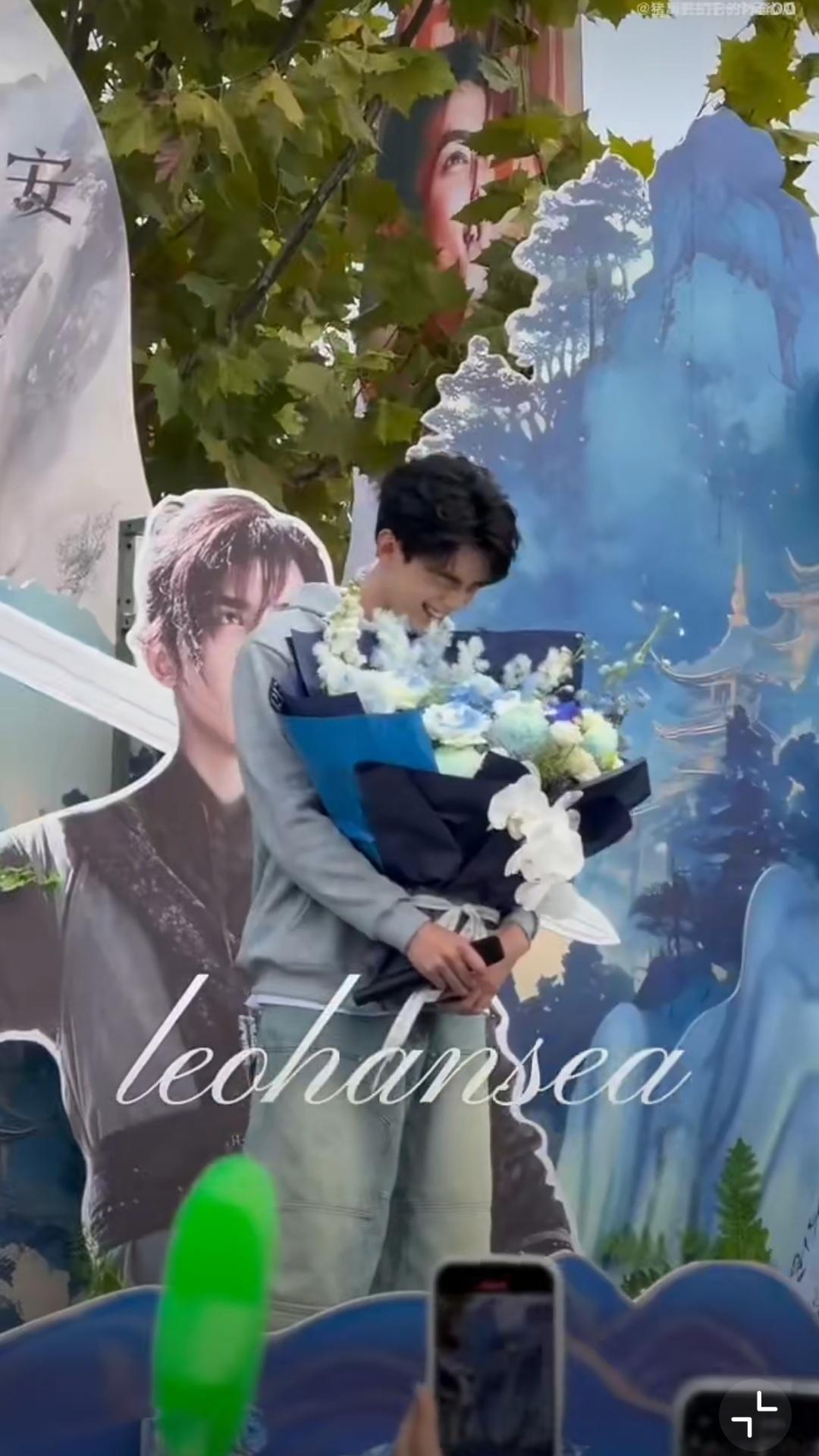 看吴磊笑的我也忍不住笑,他都合不拢嘴了,也不知粉丝说了啥。