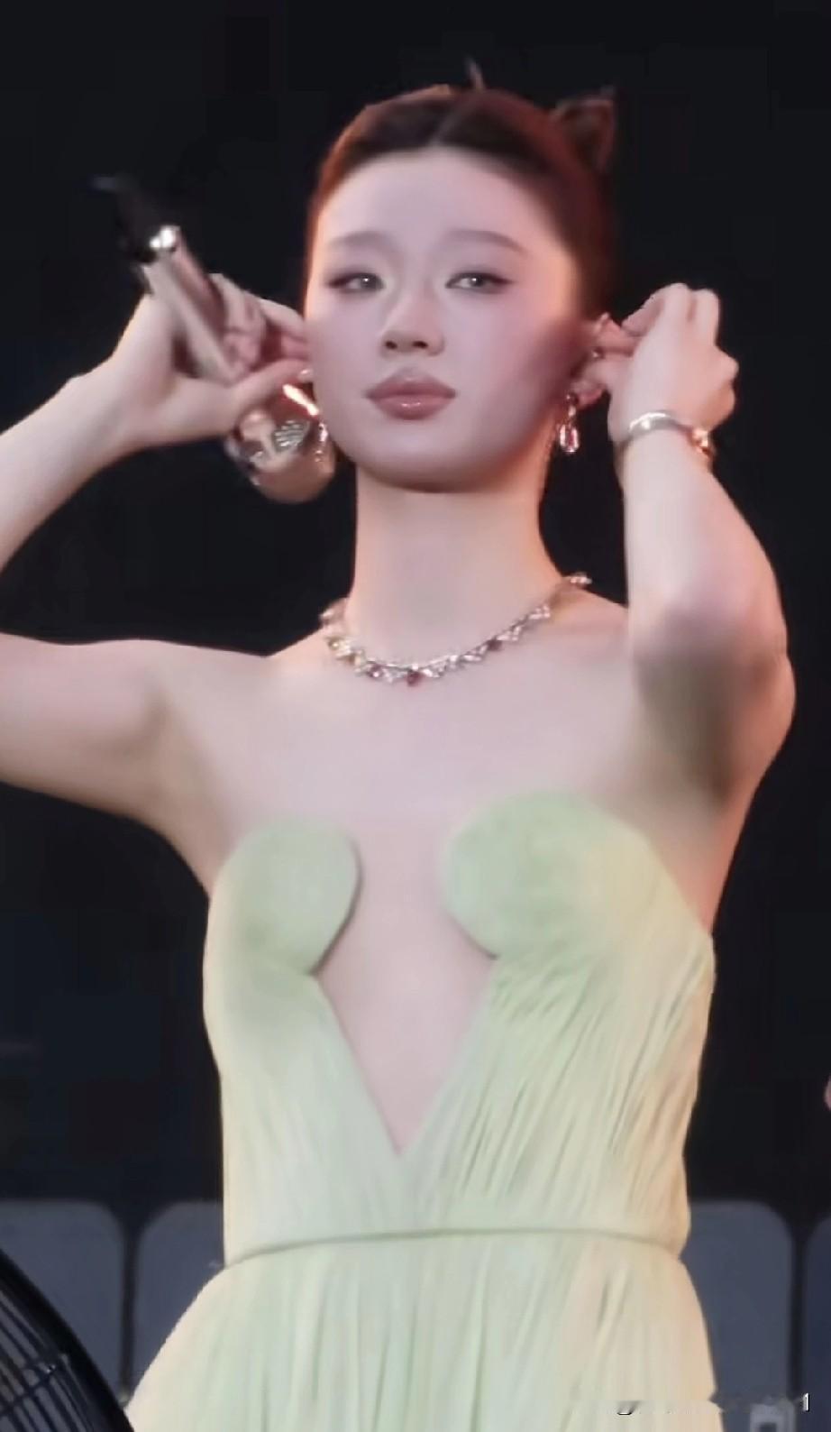 这是啥造型啊!还挺别致呢!苍天呐!大地呐!是哪位服装师这么会设计啊!每个赛道都会有选手,哪怕这个赛道极为小众。她穿着这样的衣服,难道不觉得尴尬吗?要是出点意外,那可就太难堪了。此情此景,正好应了“只要你不尴尬,尴尬的就是别人”这句话。这个造型,让我想起《倩女幽魂》里老道士为保自己,用耳垂护住眼睛的画面。