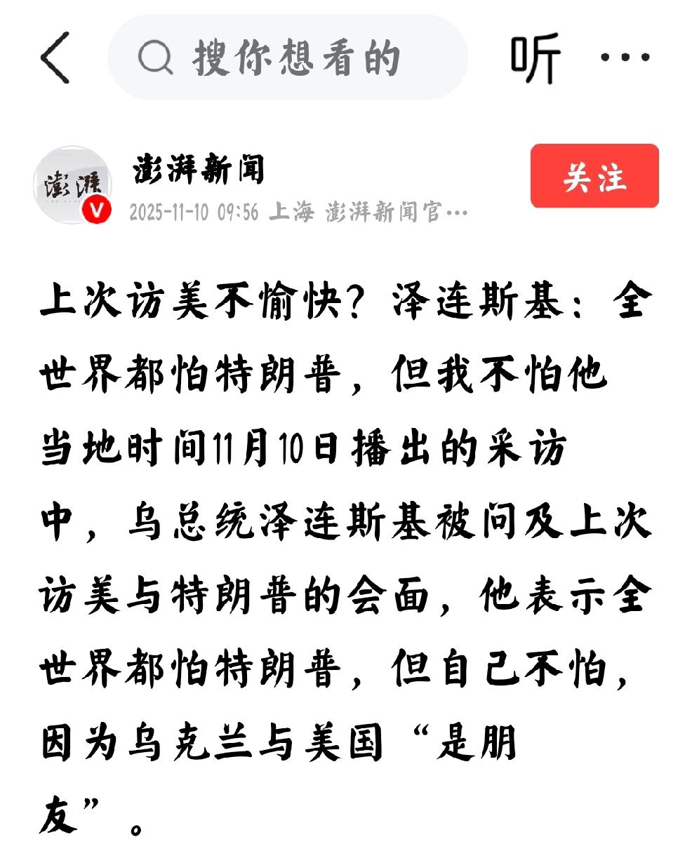 小丑 个人观点:这句话就能看出来,他是在把自己当小丑。 乌克兰总统泽连斯基:最新的言论“全世界都怕特朗普,但他不怕” 当心马屁没拍着,拍到马腿上。