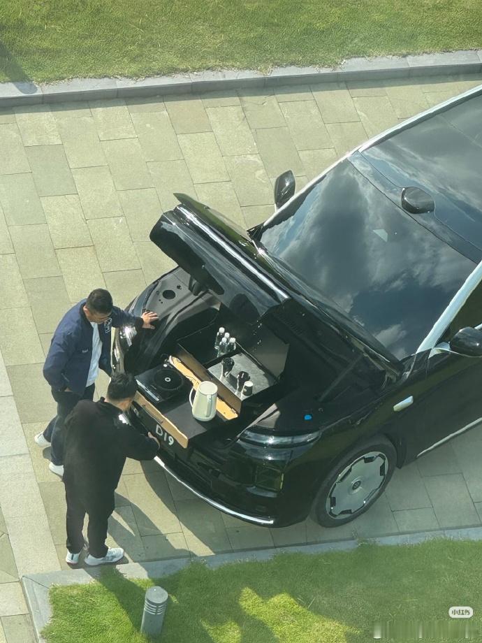 现在新势力们真会玩,有一说一,这个场景还是不错的,省去露营的时候还要拉线布置茶桌的麻烦,对于爱喝茶的钓鱼佬也是一个好功能。