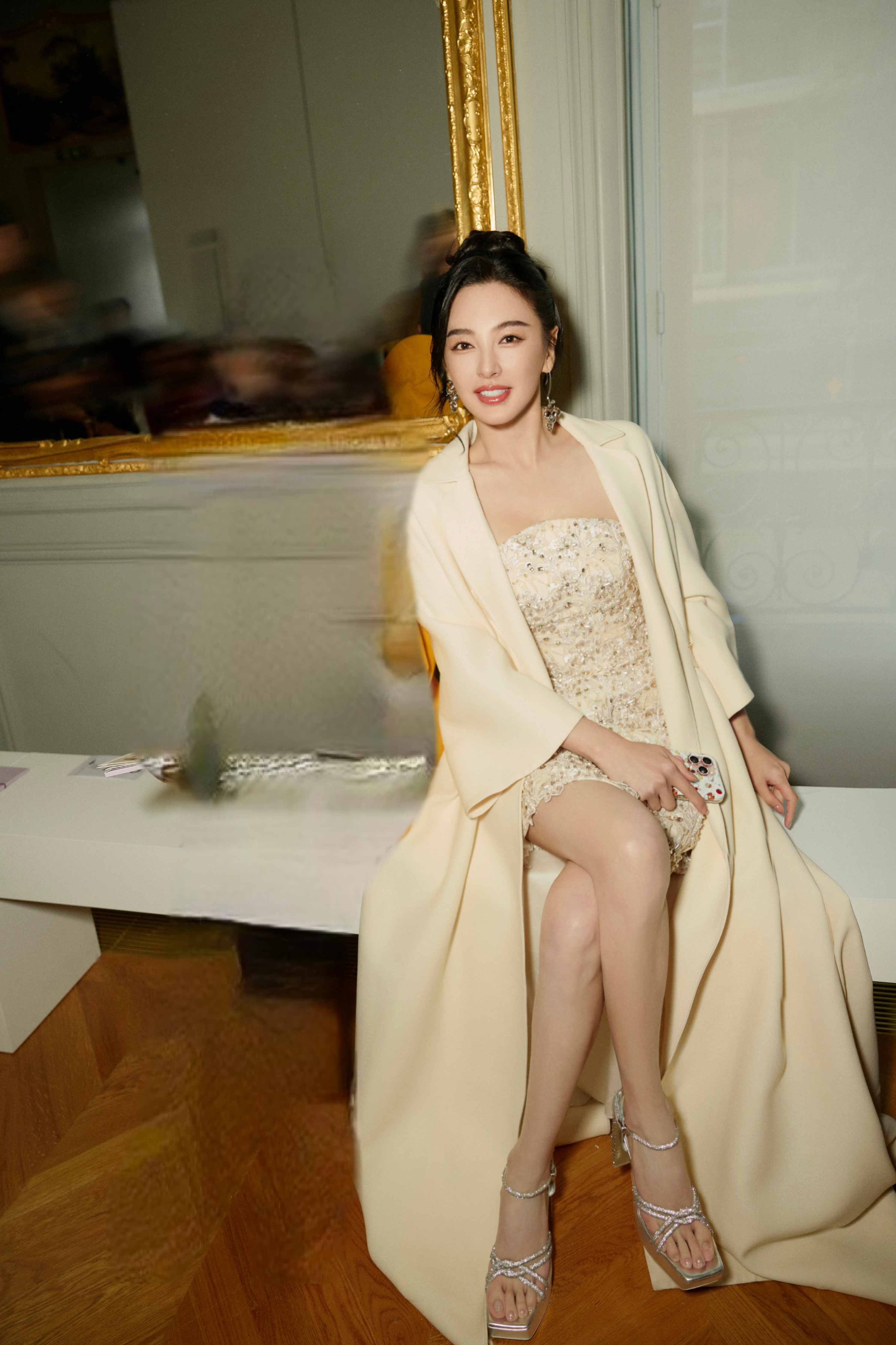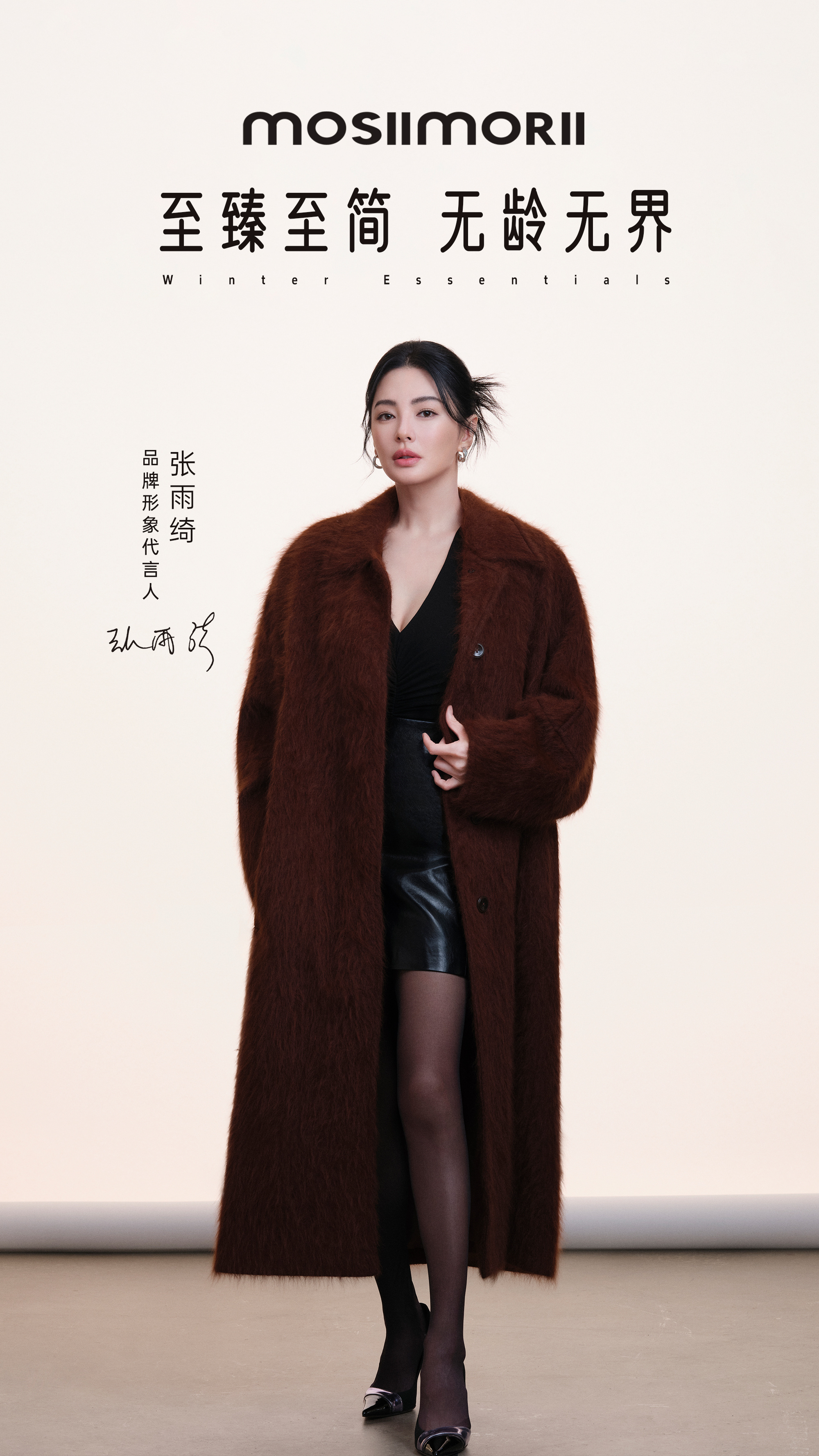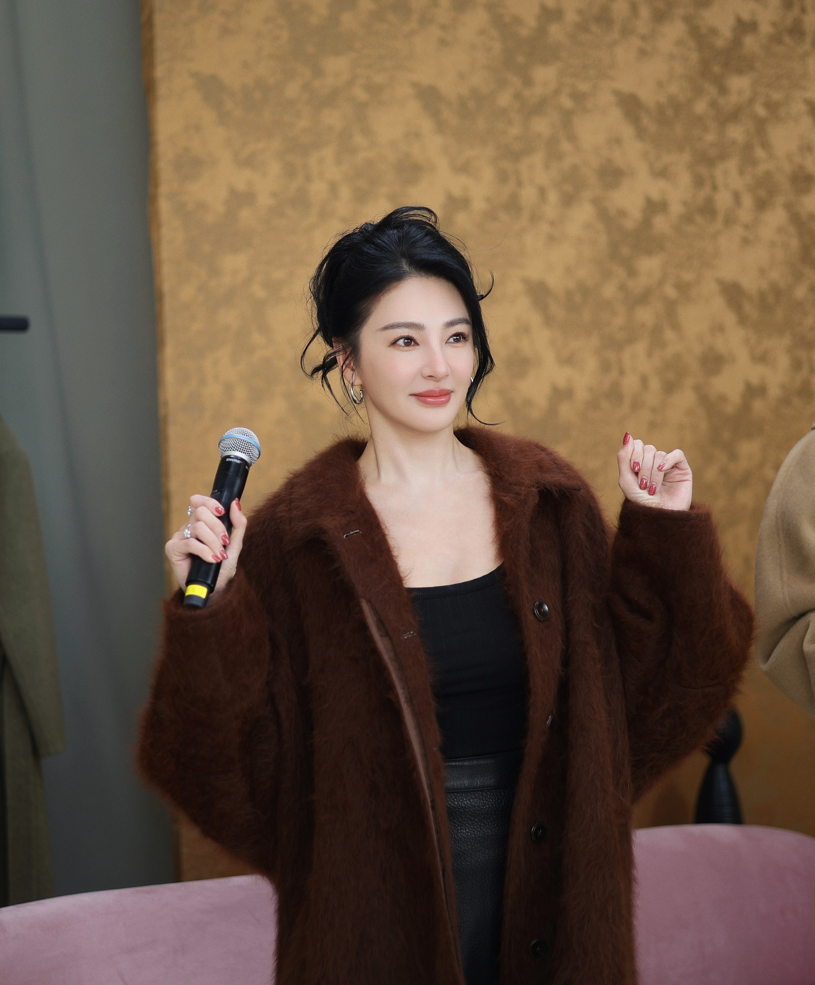 张雨绮 深棕毛绒大衣裹着慵懒,黑裙衬得腿线利落,握着话筒的指尖带点红,是秋冬里自带氛围的明艳。