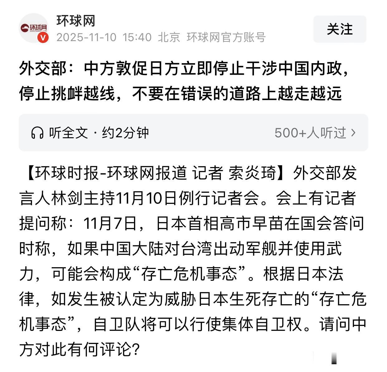 中国总领事,太敢说了!真的生气了! 日首相叫嚣台海动武,中国总领事怒怼日首相:“敢碰台海,就砍掉那个肮脏的脑袋!” 11月7号,日本首相高市早苗公然放话:台海若动武,日本可能行使集体自卫权!这比安倍的“台湾有事就是日本有事”更嚣张,直接踩爆台海红线。 中国驻大阪总领事薛剑霸气回怼,一句“别无选择,只有砍掉那个肮脏的脑袋”,让日本舆论炸了锅!《产经新闻》急着追问却吃了闭门羹。 这位在日本舆论场向来敢说敢冲的“战狼外交官”,再次亮明中方底线。台海是中国内政,轮不到日本指手画脚! 高市早苗刚承诺遵守中日声明,转头就撕毁承诺,妄图介入台海,简直狂妄到没边。薛总领事的硬气回应,就是告诉日本:中国的底线碰不得! 日本 台海局势