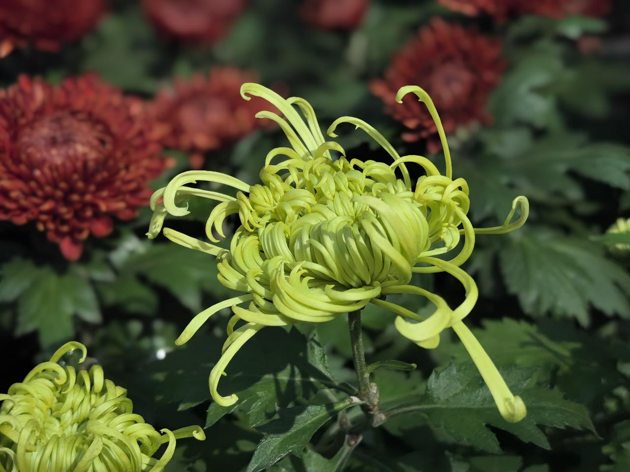 五绝·观菊花展 争奇植物园, 斗艳步廊轩。 绝胜阳春色, 清芬熏忘言。