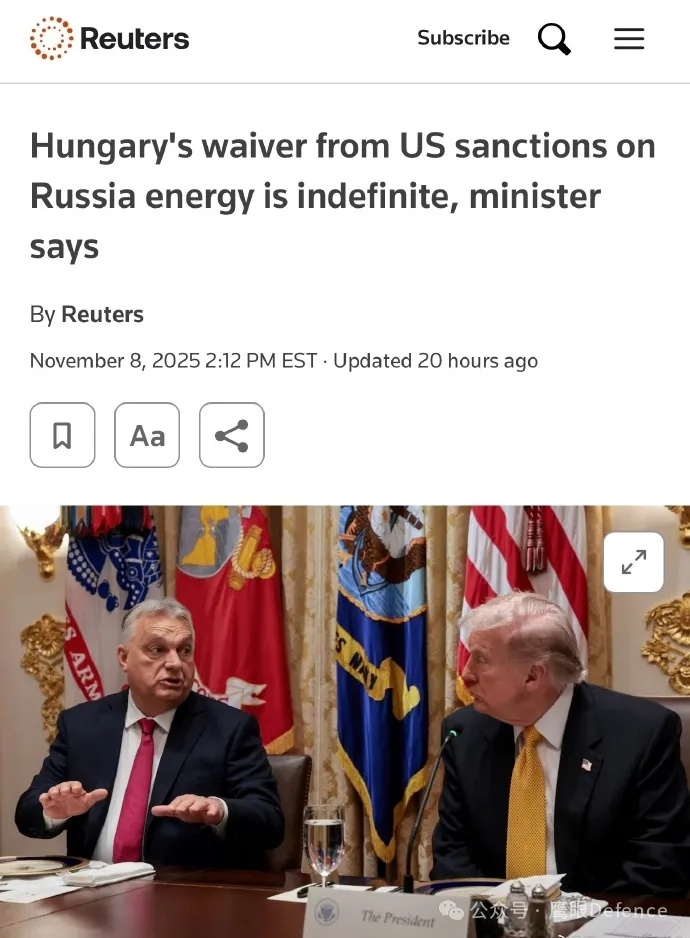 烽火问鼎计划 据路透社报道,关于匈牙利获得美国政府制裁豁免、继续购买俄罗斯能源的官方声明有误,欧尔班和匈牙利外长西雅尔多称特朗普给予的制裁豁免是“无限期的”,但白宫否认,称制裁豁免只有一年,为此,俄罗斯人在“电报”上抱怨特朗普又改变主意了。