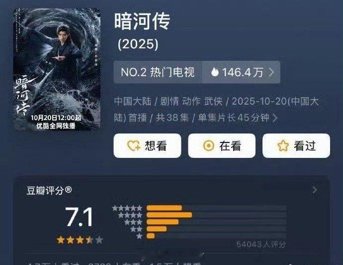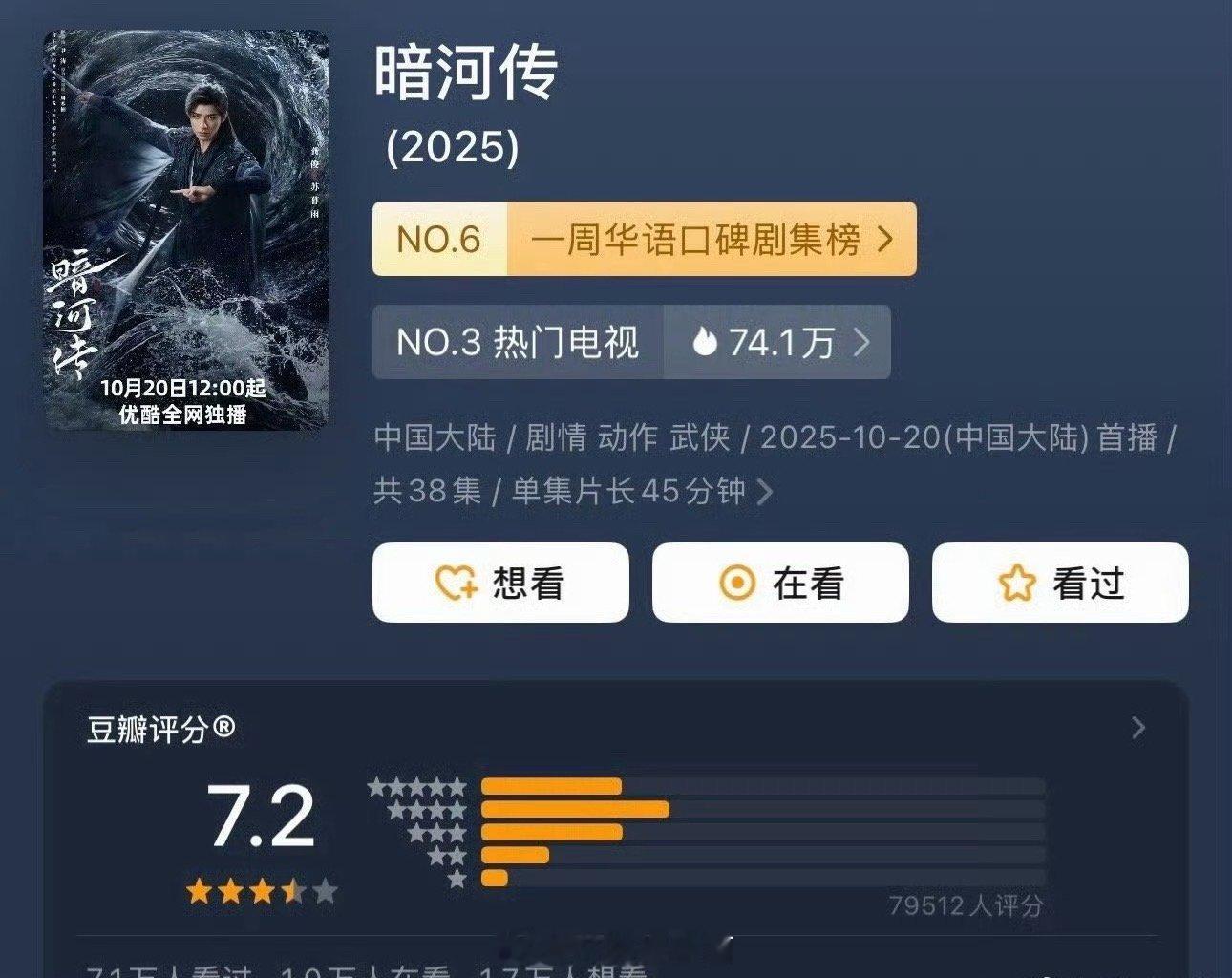 龚俊[超话] 报!!!!龚俊暗河传评分又上涨了,大事很妙啊,现在7.2