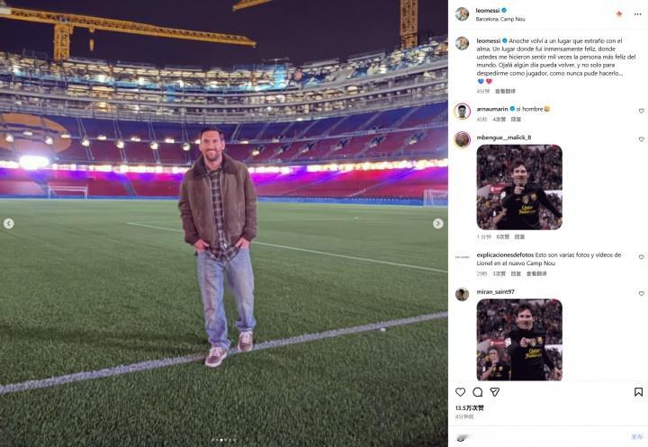 梅西:昨晚我重归一处我魂牵梦萦的地方。那个曾让我无比幸福的地方,你们让我无数次成为世上最幸福的人。但愿有天我能归来,不止是以球员身份作别——就像我始终未能完成的那样…