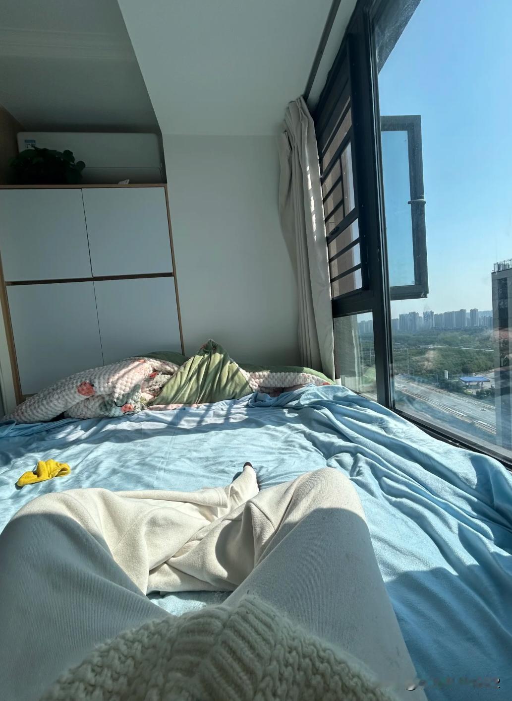 最不后悔做的就是飘窗床了 犹豫好久做了飘窗床!次卧房间只有11.2㎡,又要做大衣柜,又要做收纳柜,还有写字台,所以床的空间就太小了。 飘窗也不小,80厘米宽,如果不用的话,卧室放个床,空间就比较小了,还是决定用了。 来客的话一个人睡效果还可以。 好多朋友关心漏风,冷的问题,完全没有,拉了窗帘一点感觉没有。 还有好多说住在梁下不好,之前也考虑过,不过没太在意,想主卧空间大一点,就在床尾做了一大排柜子,可太香了。