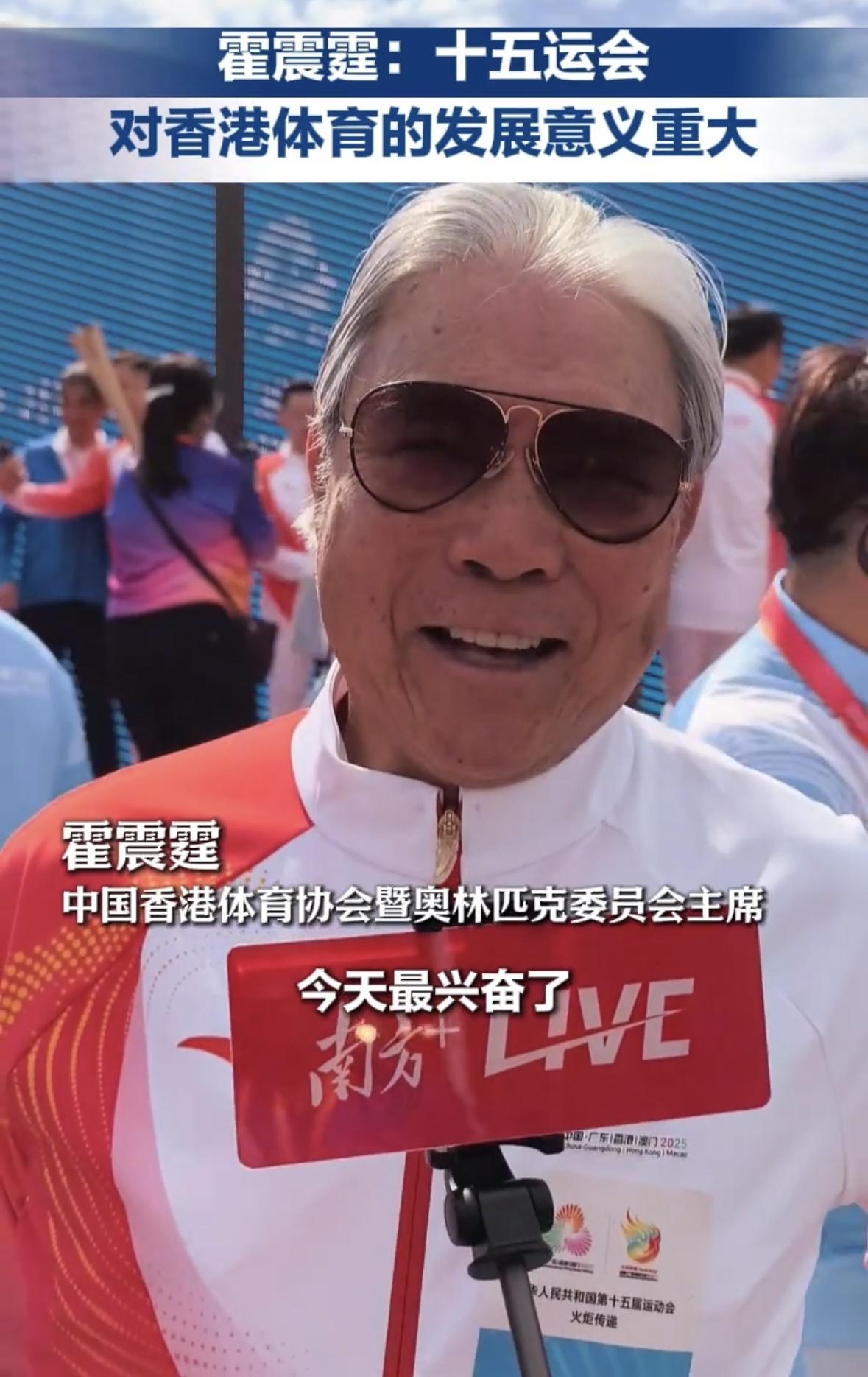 霍家又赢麻了! 十五运会,79岁的霍震霆在香港金紫荆广场接过火炬,小跑传递给下一棒,精神矍铄。 我们的“跳水女神”,他的儿媳妇郭晶晶在广州也接过了火炬。 而霍启刚因为要参加选举,不能来现场,估计很是遗憾。 霍家三代人都是在身体力行为中国体育事业做贡献,值得敬佩!