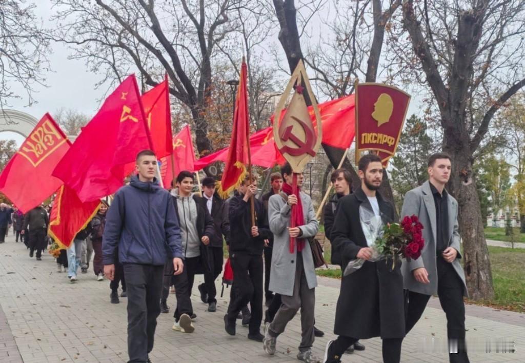马里乌波尔红旗飘起,年轻面孔涌向红色庆典,三十年后历史翻篇? 2025年11月7日,马里乌波尔有群人举着红旗聚在一起。这地方三年前还在乌克兰手里,那时候搞共产主义活动被抓会坐牢。现在这事儿突然允许了,还真有不少人来参加。 其中最年轻的才十几岁,比他们父母那个年代敢多了。俄罗斯那边也有人说,现在就该走共产主义道路才是正道。苏联倒台三十多年了,为啥反倒有这变化? 战争打到现在,乌克兰那边挺西方,这边态度却在变。这事让不少专家琢磨不透,说不准下一步局势会怎样。