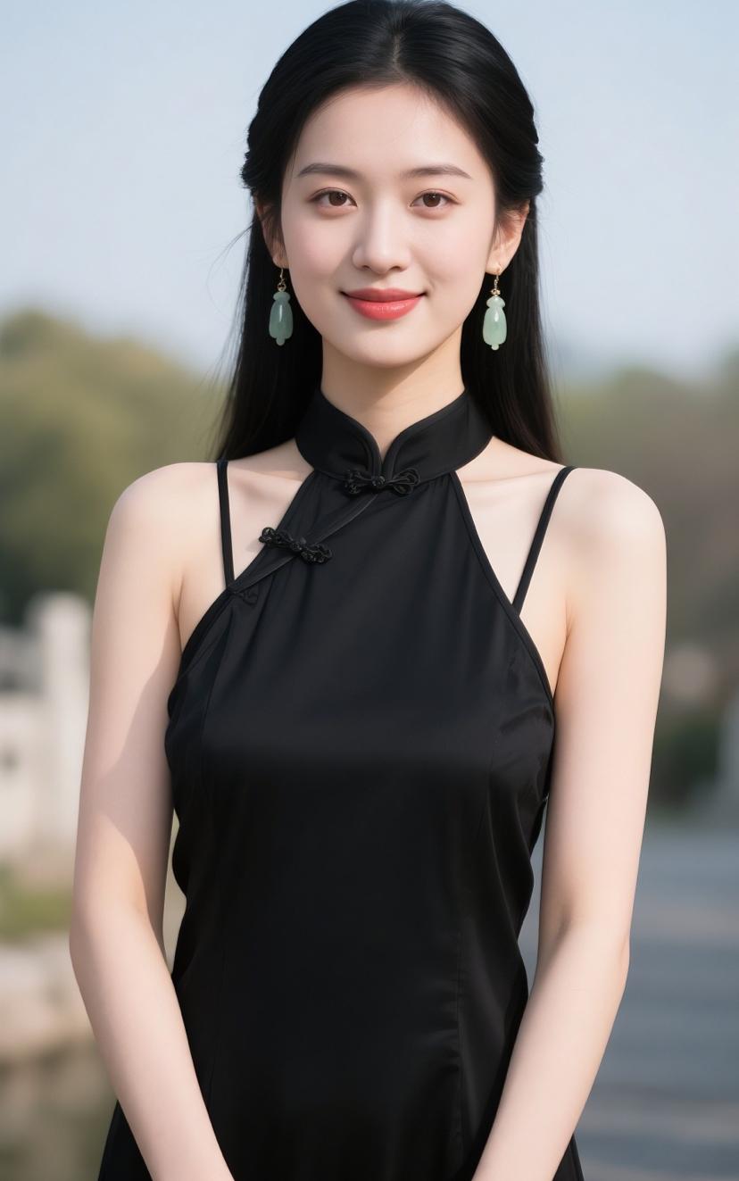 优雅网球少女,白色旗袍搭配珍珠饰品,尽显东方韵味。