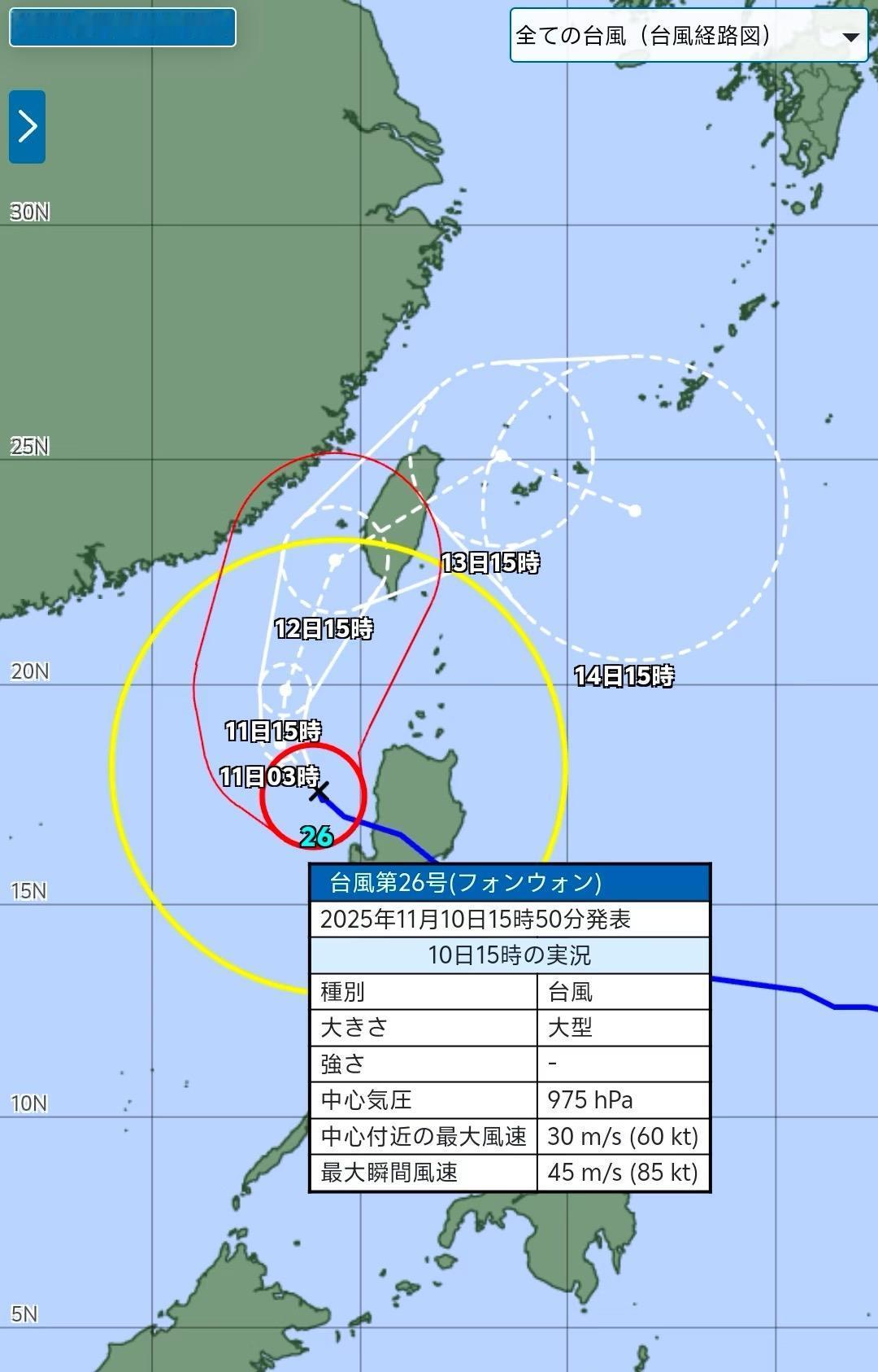 起步10级发展成16级,进入菲律宾时14级,过了菲律宾入南海13级,如非北风吹得紧它就是一个风王。