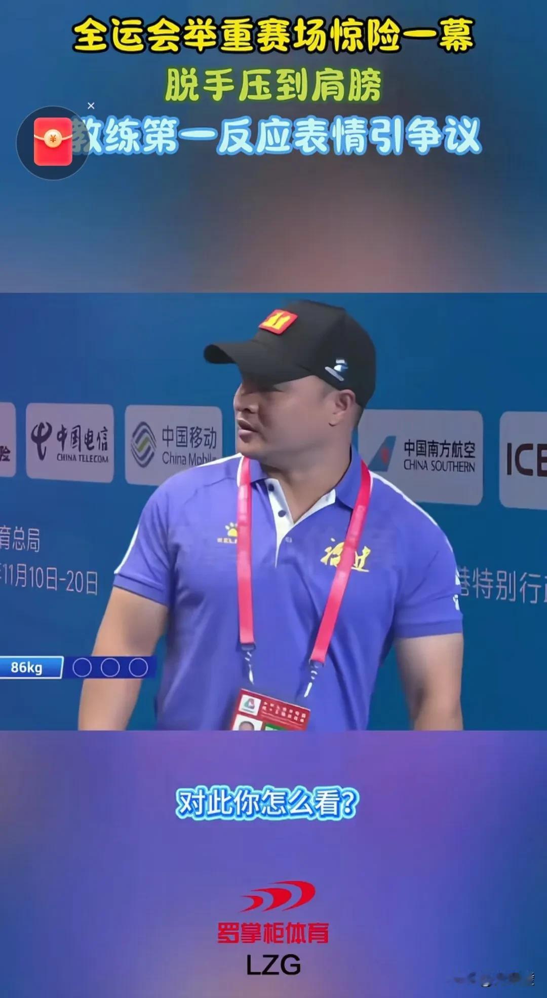 全运会举重惊魂!86公斤杠铃砸肩,教练“奇怪表情”引全网热议 全运会举重赛场