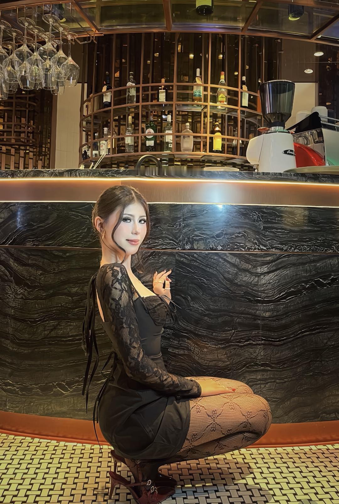 优雅酒吧氛围,白衣少女静坐沉思