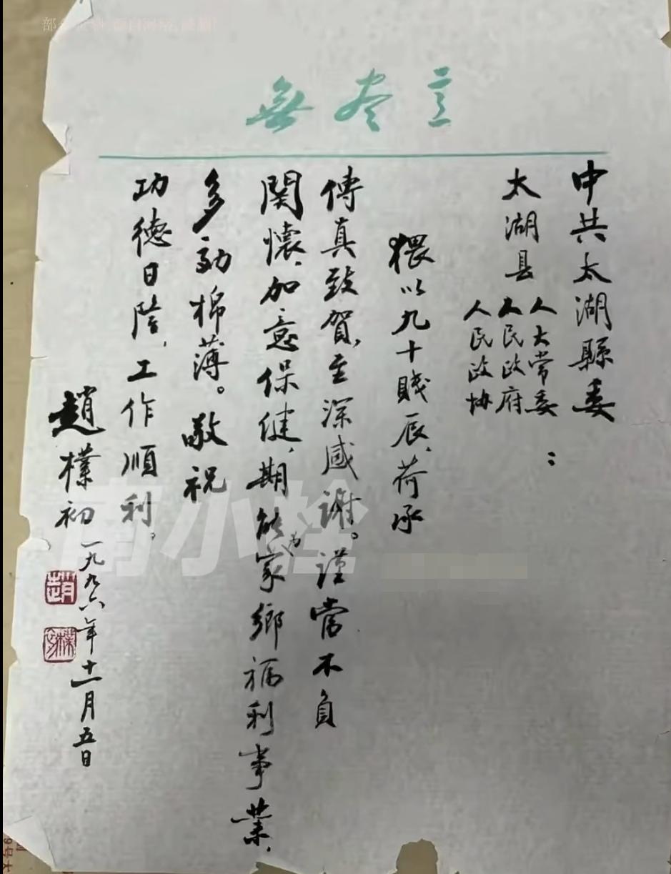 赵朴初九十岁时写给家乡的信。