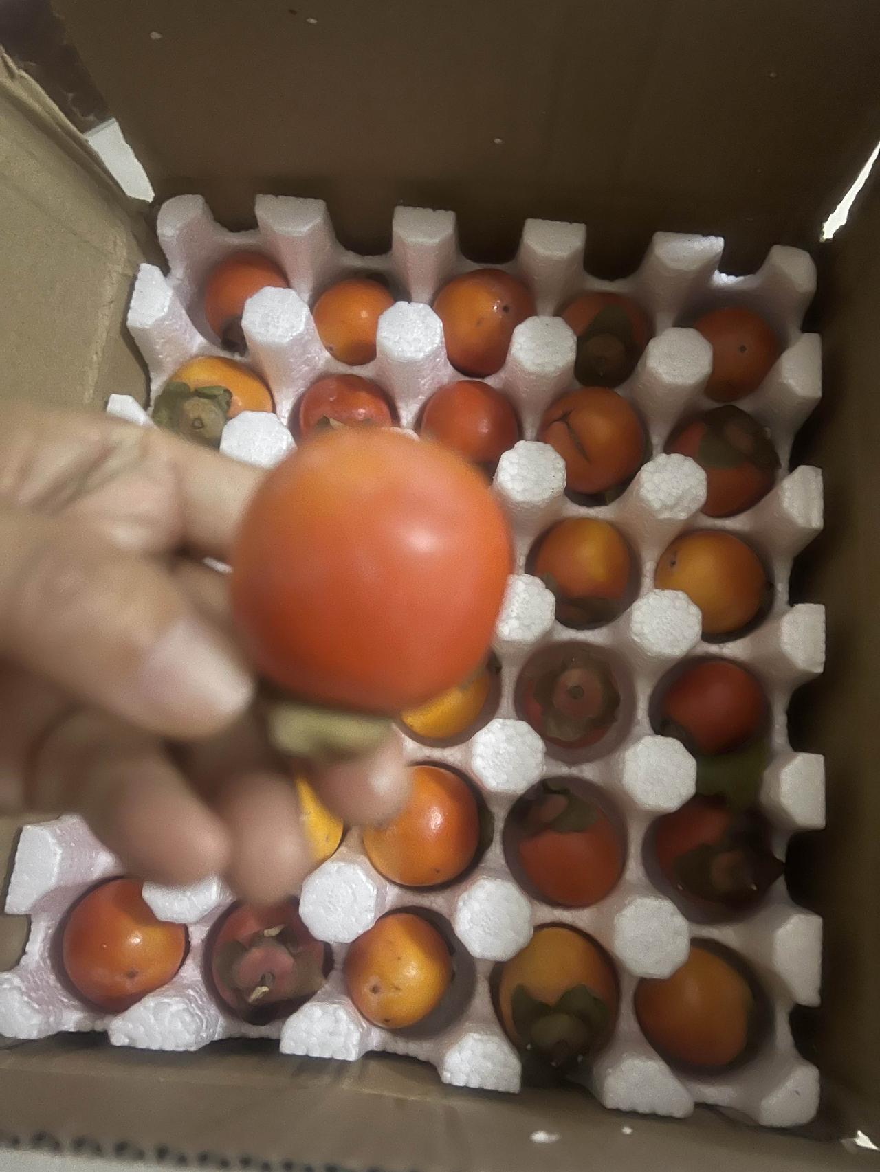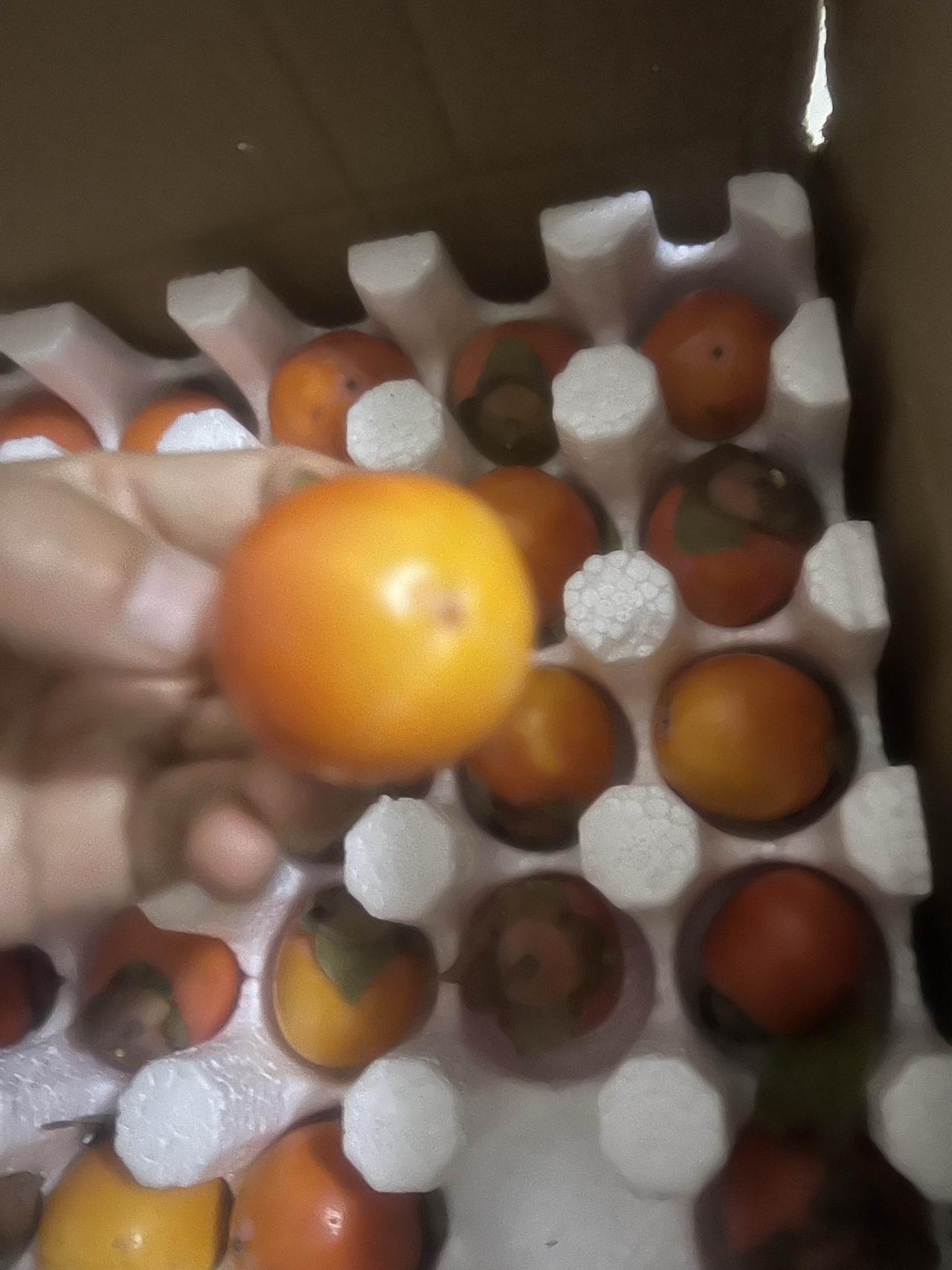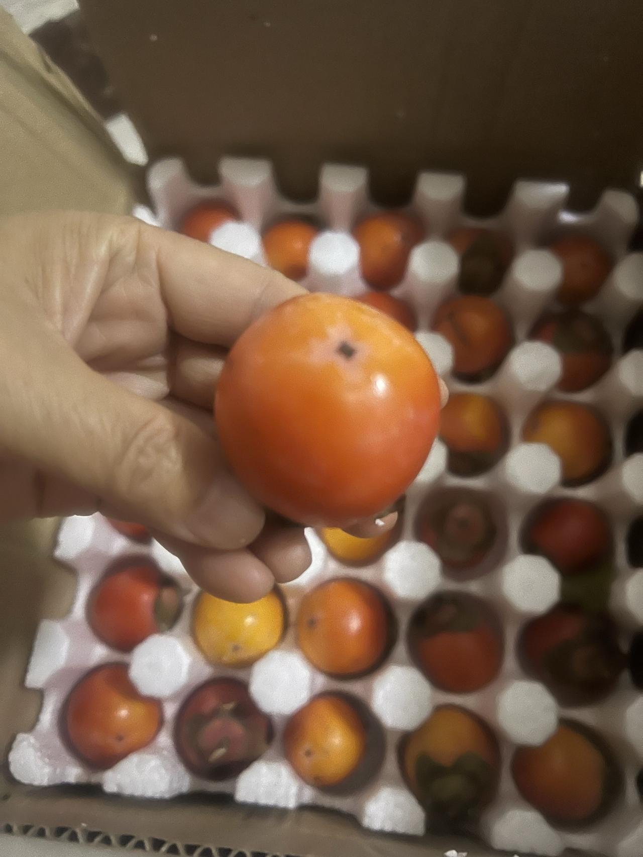 昨天晚上有收到一箱柿子,看起来硬的很没有成熟,没有关系和苹果放一起几天就行了。