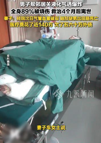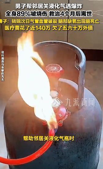 浙江绍兴,钱先生好心帮美女邻居关煤气,没想到液化气突然爆炸,钱先生全身89%烧伤,气管血管破裂离世!医疗费花了140多万,邻居却毫无表态! 时间要从7月2日傍晚说起,绍兴嵊州,暑气还没完全消退,剡湖街道里坂村的出租屋片区飘着饭菜香。 钱先生刚洗完碗,就闻到一股刺鼻的液化气味,像带着针似的扎进鼻子里。 他皱着眉往楼上望,三楼住着邻居张女士,两家平时处得像亲戚,张女士常来家里串门,妻子车女士今天还约着她一起去工厂。 没多想,钱先生抓起门口的拖鞋就往三楼跑,他推开门时,燃气味浓得呛人,燃气灶关着,但液化气罐的阀门还开着。 就在他伸手去拧阀门的瞬间,“砰”的一声巨响,煤气管突然从阀门处脱落,闪爆的火焰瞬间裹住了他。 楼下的车女士和张女士刚走到巷口,听见爆炸声就往楼上冲,推开门时只见钱先生浑身是火,正跌跌撞撞地喊“快打120”。 谁也没想到,这个冲上去关阀门的男人,是这个家唯一的顶梁柱。 钱先生和妻子从贵州六盘水来嵊州打工,他开工程车每个月挣一万块,要养着老家读初中和高中的两个孩子,去年老父亲患绝症去世,治病花光了所有积蓄还欠着债。 车女士看着丈夫被抬上救护车,他全身的衣服都被烧没了,皮肤泛着吓人的惨白,连开口问“我是不是毁容了”都显得格外吃力。 在医院的四个月,是这个家庭被拖入深渊的四个月。 医生拿着诊断书叹气,全身89%的皮肤被烧伤,二度到三度的灼伤遍布四肢和躯干,肺部感染、呼吸衰竭的并发症也跟着袭来。 7月5日第一次手术,10月22日创面刚有好转转去康复中心,所有人都以为能喘口气,可第二天钱先生就突发气管血管破裂,脑部缺氧导致脑死亡。 11月2日晚上7点,监护仪的声音变成了一条直线,车女士手里攥着的缴费单总额停留在140万。 这笔钱像座大山压垮了这个家,医保报销了一部分,网友捐了一部分,剩下的五六十万全是找亲戚朋友借的。 车女士的姐姐说,妹夫走后,骨灰带回贵州老家安葬,两个孩子还不知道爸爸没了,怕影响学业一直没敢说。 最让她心寒的是,事发后张女士只借了2万块,之后就再也没主动联系过,每次问起就说“等有关部门调查完责任再说”。 目前嵊州住建和消防部门还在调查爆炸原因,液化气站点的工作人员去医院看过,但也没给出明确说法。 消防部门早就提醒过,燃气泄漏要先开窗通风,别碰任何开关,到室外打电话报警,可钱先生的善意让他忘了这些风险。 车女士说,等办完后事,就去为丈夫申请见义勇为。 这份善意确实值得敬重,邻里之间互帮互助本是该有的温暖,可善意不该用生命来换。 就像网友说的,当时钱先生哪怕多等一分钟,给张女士打个电话,或者直接拨打119,悲剧或许就能避免。 这件事更该让人深思的,不只是邻里间的责任划分,还有见义勇为的保障和安全意识的普及。 钱先生用生命换来了一次沉痛的警示:善意从来没有错,但善意需要建立在保护好自己的基础上。 我们既要为钱先生的勇敢点赞,更要记住他用生命留下的教训,先保自身再救他人,这不是冷漠,而是对自己和家人负责,也是让善意能更长久传递的前提。 希望钱先生的家人能得到应有的帮助,也希望这样的悲剧永远不再发生。