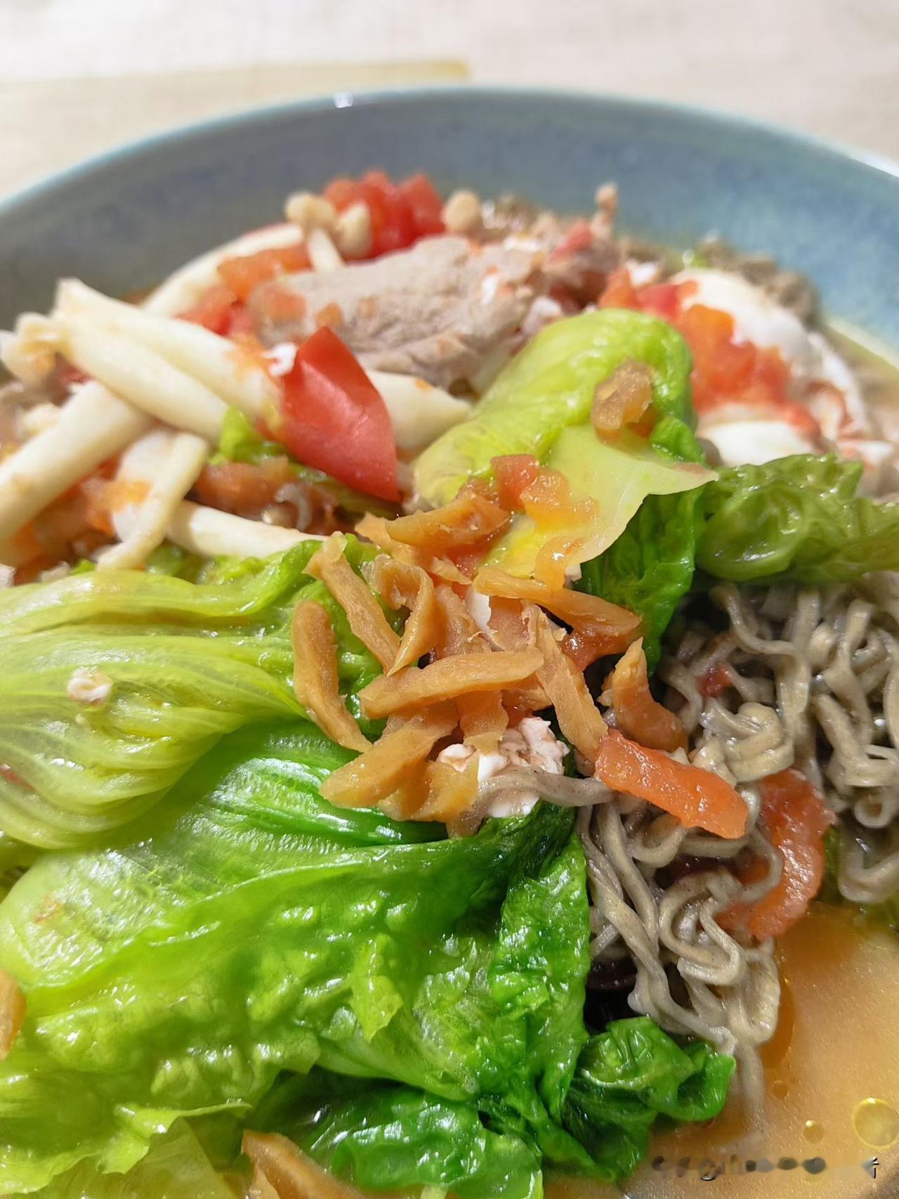 早起半小时,给自己做了碗封神早餐面!溏心蛋+荞麦面的组合绝了 谁能想到,早起做的这碗溏心蛋荞麦面,直接把早餐吃出了幸福感天花板! 溏心蛋一夹就流心,番茄的酸甜裹着荞麦面的劲道,配上脆生生的生菜、鲜掉眉的菌菇和嫩滑肉片,每一口都在疯狂暴击味蕾~ 暖呼呼一碗下肚,一整天的活力都被唤醒了!打工人的早餐仪式感,就该这么拿捏! 你们早餐都爱折腾啥好吃的?分享一下
