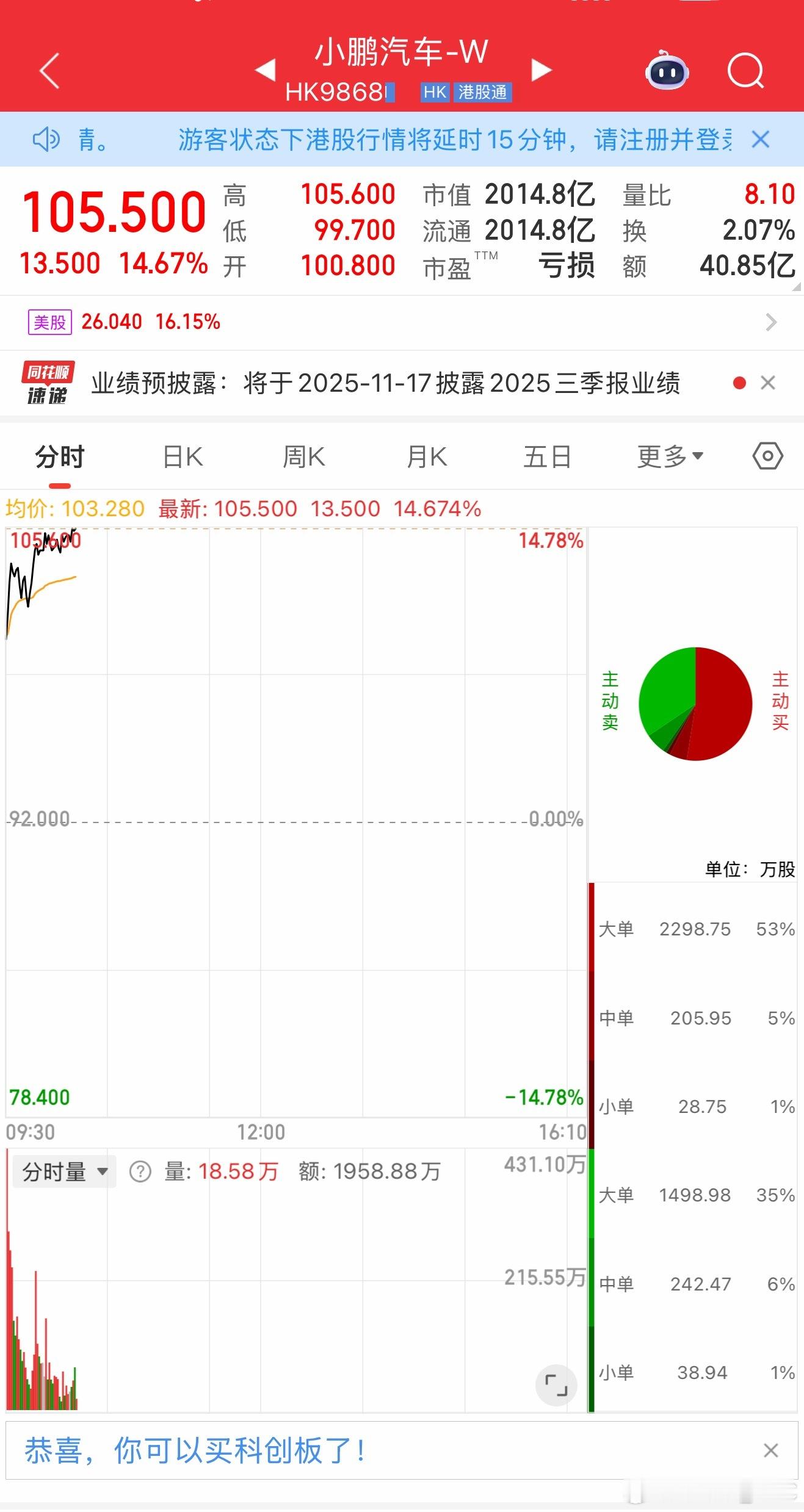 小鹏汽车大涨超16%小鹏股票涨的。唉!恨自己认知不足,不对我也没钱,没账户[允悲
