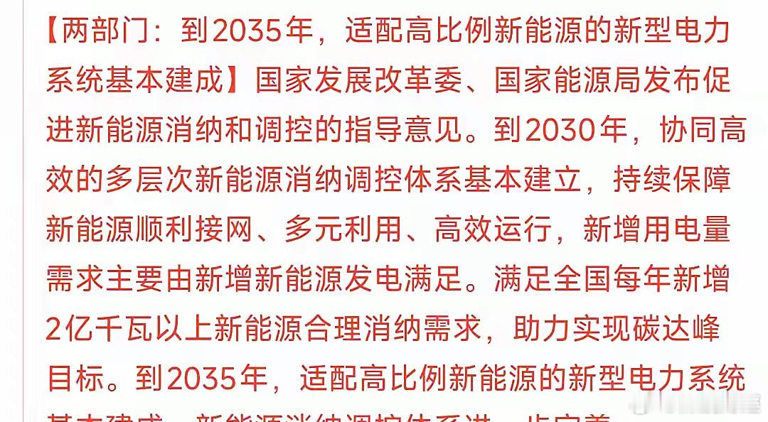 两部门:到2035年,适配高比例新能源的新型电力系统基本建成。