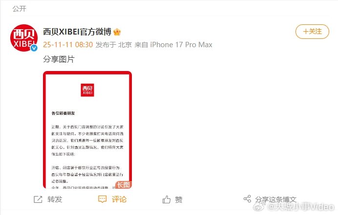 【西贝回应门店调整西贝回应近期情况】11月11日, 发文回应多门店闭店: