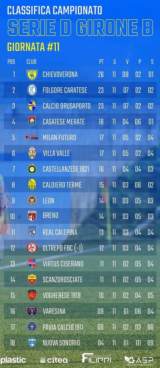 【意丁联赛B组积分榜】 意丁联赛 2025-26赛季意丁联赛第11轮积分榜: