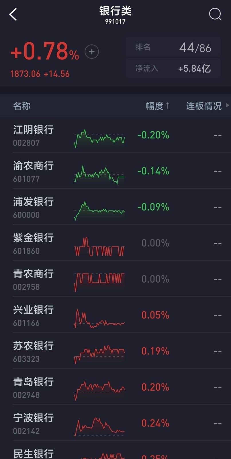 银行股低开后直接跳水下跌,不过没过多久就被抄底资金拉起了,仅浦发银行,渝农商行,江阴银行下跌,工商银行早盘跳水跌破8元关口,不过之后持续震荡回升收盘上涨0.87%,宁波银行创本轮行情新高后冲高回落,长沙银行,上海银行,沪农商行,中信银行,创反弹新高。今天银行股难得的是当大盘冲上4000点关口后并没有遭到打压砸盘,总体走势非常平稳,市场已经克服了恐高心理,大盘站上4000点已经势不可挡,打压砸盘银行股只会丢掉廉价筹码,银行股走势已经向好的方向发展,长期价值投资者千万不要割肉了。
