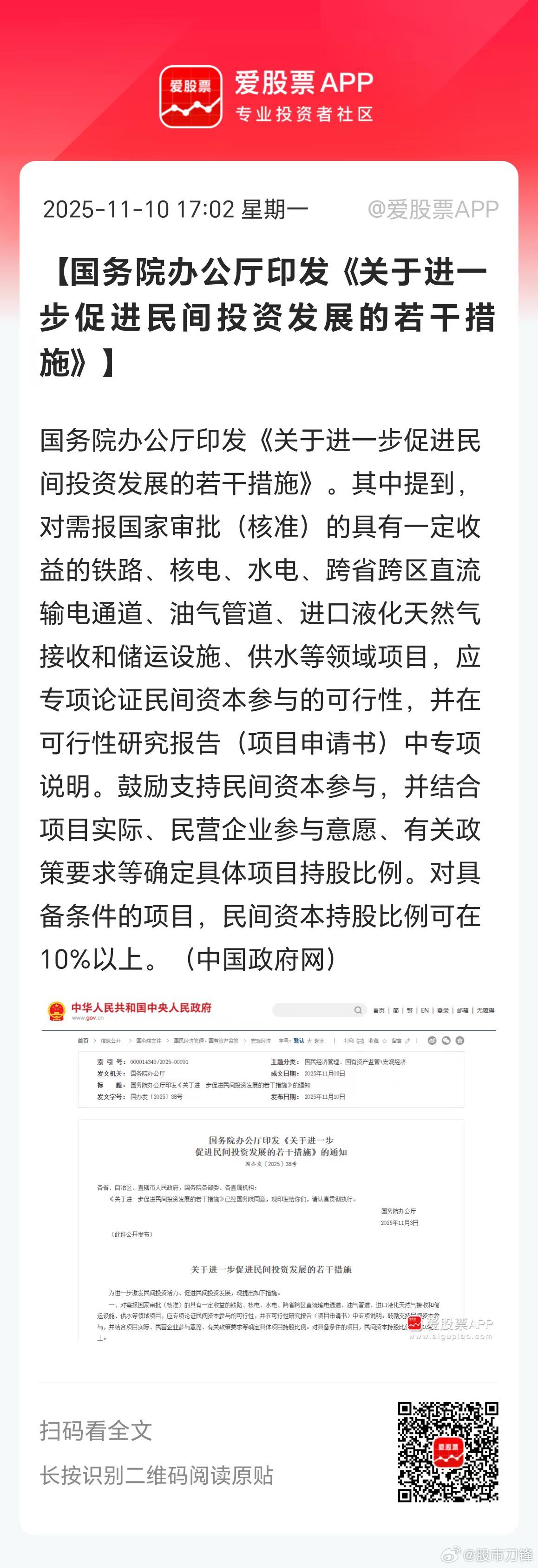 今晚国办放大招,促进民间投资提出13项针对性政策措施,明确点名铁路、核电、低空、商业航天等领域!