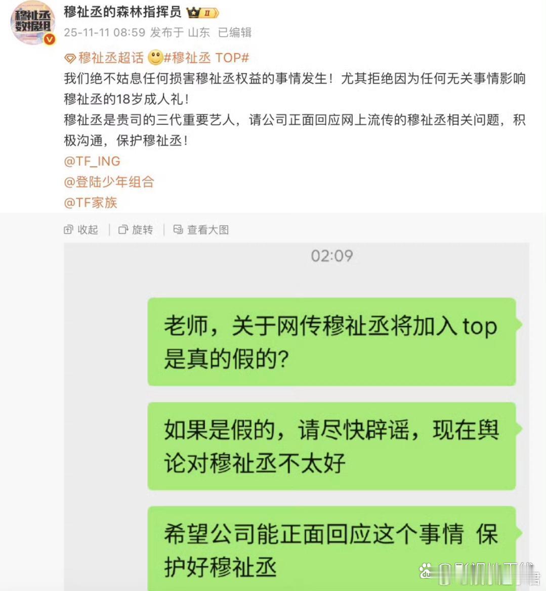 网传穆祉丞加入TOP登陆少年组合穆祉丞数据组连夜轰炸对接,暂未得到官方回应;朱志鑫数据组发布严正声明,表示拒绝网传加人情况,将坚决维护C位待遇。