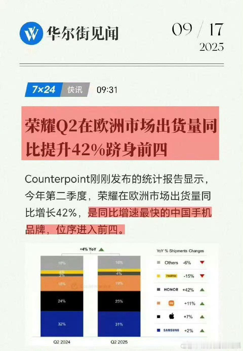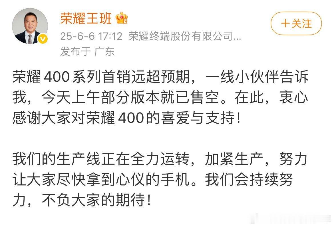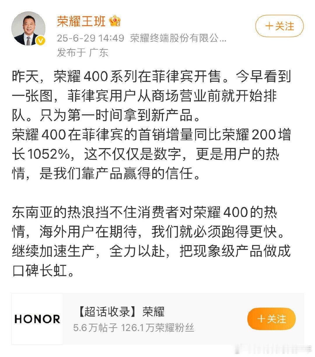 肖战代言的荣耀400系列全球发货量:
