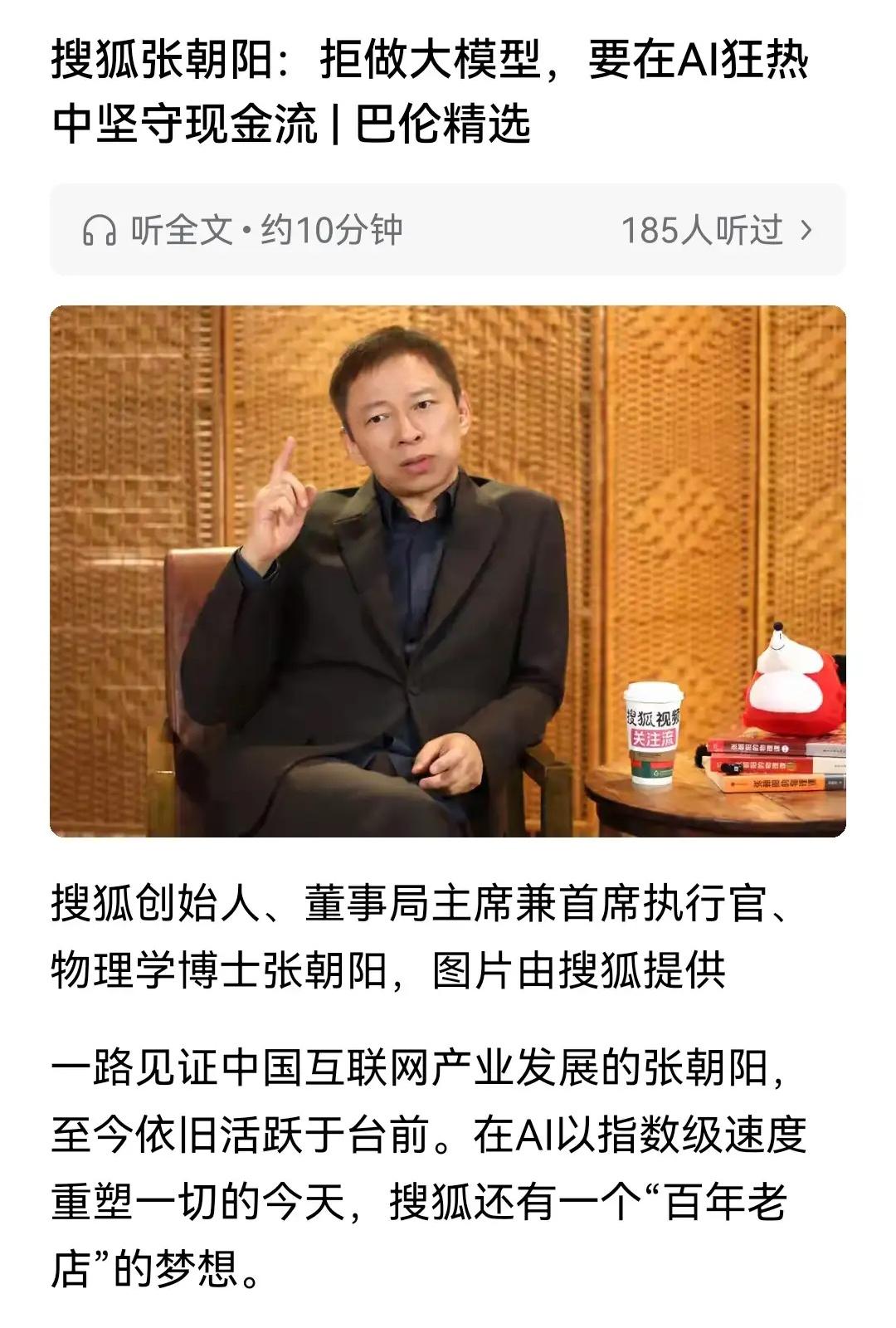张朝阳是清醒的,他说搜狐不会建大规模的AI模型,需要保持现金流。首先,搜狐的现金流相对其他大公司来说是有限的啊,他确实也没有这个资金去投这个AI的,他也清醒看到了AI就是有泡沫的,目前AI给我们看到就是很简单的一些提问,然后回答搜出来的答案都是啊通过我们人类知识资料的喂养进行的加工出来的东西,他很少有自己的知识 企业也好,家庭也好,大到国家也是一定要保持现金流,现金流不大的情况之下一定要保持一定量的现金,做企业的账上必须要有能发18个月工资的现金储备,总之这个社会现金为王,如果每个月赚的钱不多(现金流),最好也要强制存款![赞] Ai能高效辅助人类或者机器人更准确的完成工作并完成更多的工作。机器人可以到达人类不适合的空间,比如空中作业水下作业矿坑作业高腐有毒环境作业,并不是大家想的去替代谁的岗位。这些机器人又需要AI人工智能操作。 在2000年,互联网泡沫时,他们都看好搜狐,网易,雅虎。现在看来,互联网时代已经到来,没有谁离得开互联网,但没有几个人用雅虎,网易和搜狐。