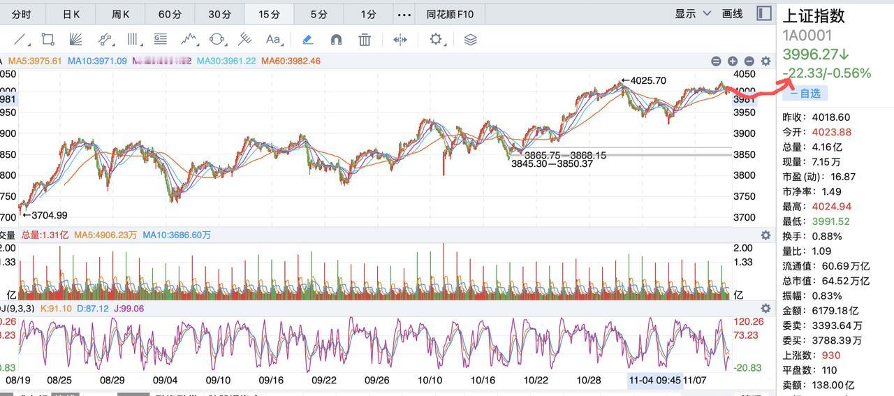 大盘在3980点左右有支撑,过度的恐慌没有必要!大盘11月主要在3950点到4050点之间震荡,这样的震荡一般以小周期3天为主,大盘要继续上攻,这样的震荡是必不可少的,大盘要站稳4000点,3900点附近还有可能回调,这样的机会对场外投资者是个机会! 这几天创业板回调比较厉害,主板权重股有上行的动力,短期内对中小股票尽量多观望,没有很好的机会少动多看,每踏空一次就有机会一次学习,每被套一次就是一次深刻的反思,是学习还是反思自己选择!
