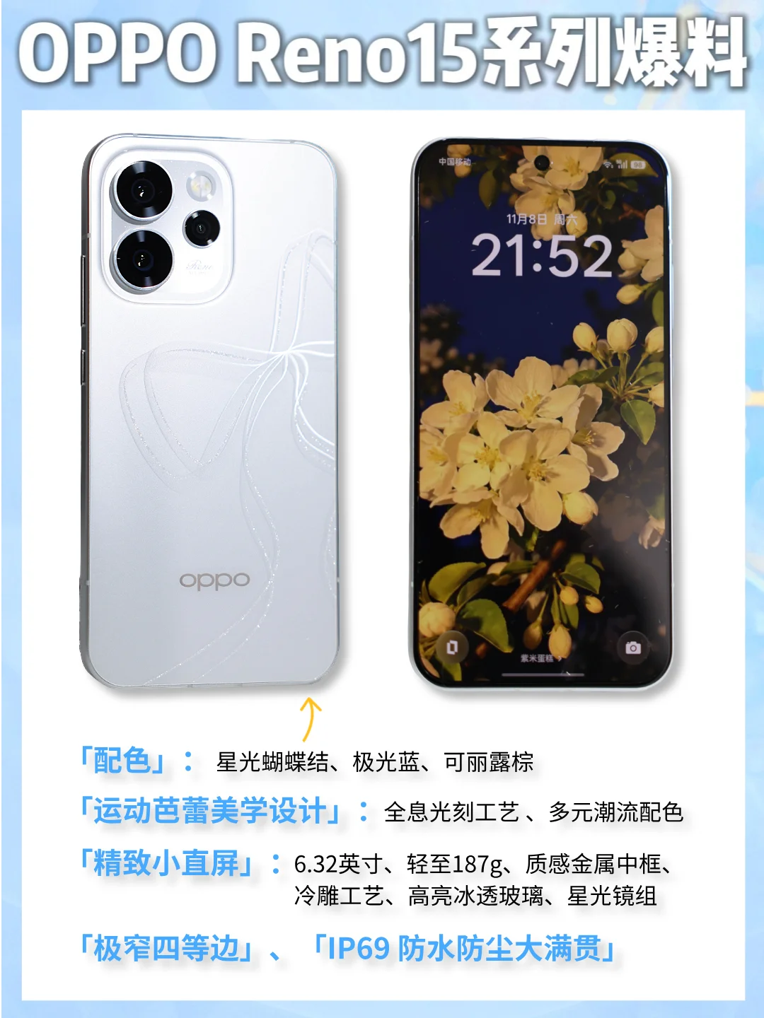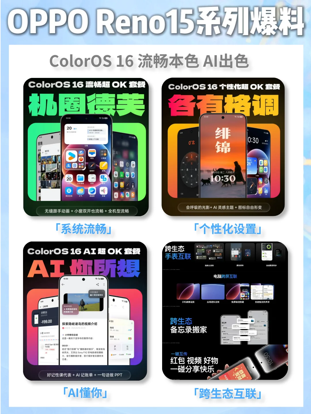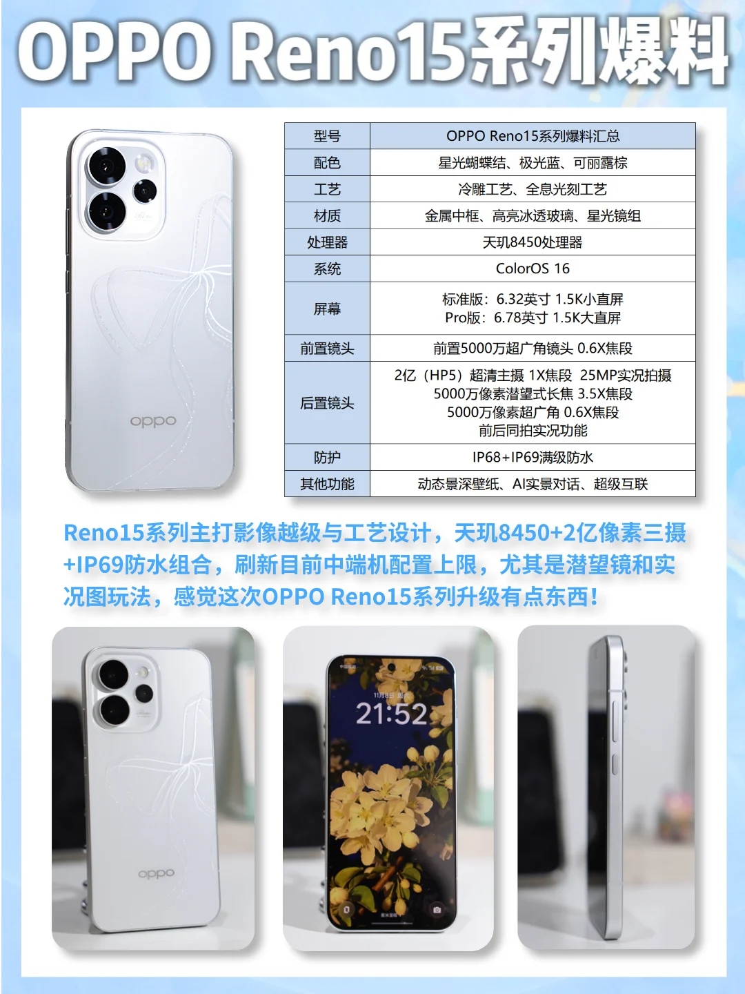 🧩 整体来看,Reno15系列主打"精致体验+实况影像”,外观质感、拍摄玩法、系统交互都堆得挺满。大家期待OPPO Reno15系列吗?